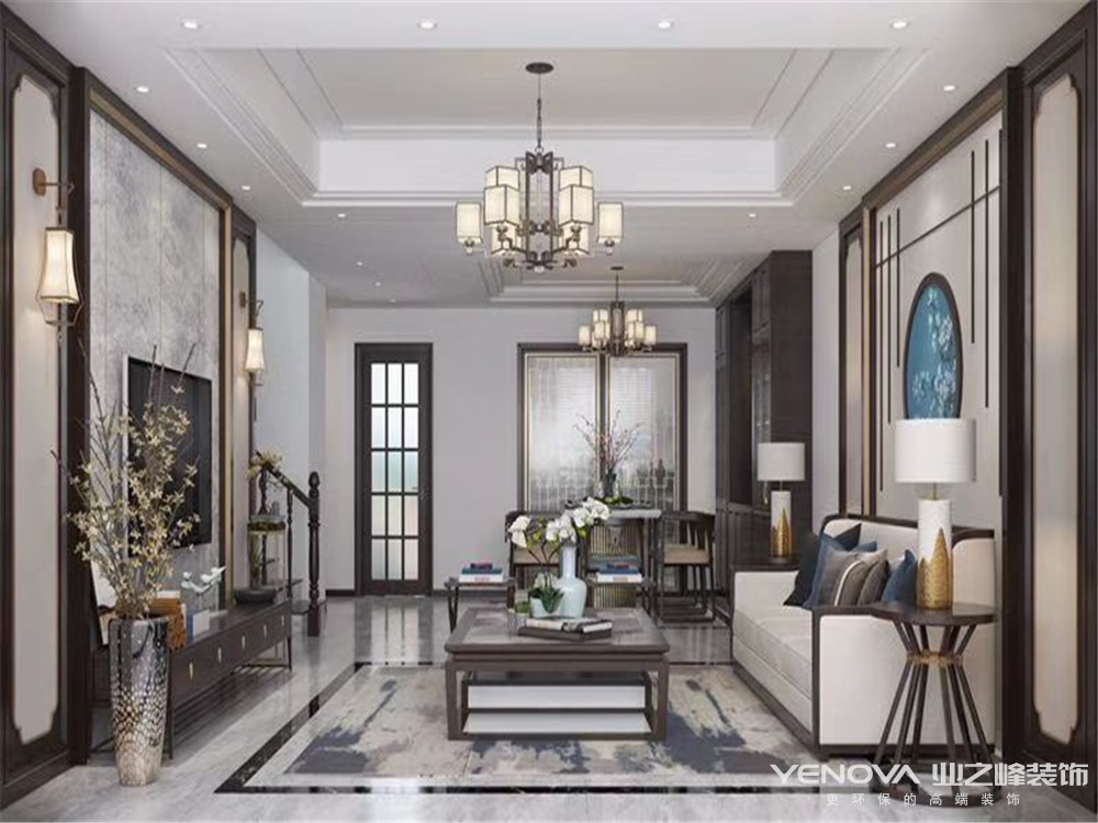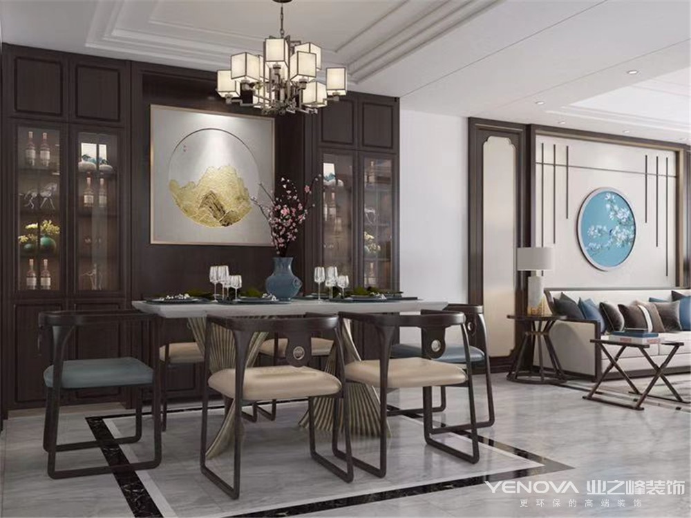 小区:万德·悦海公馆 面积:180㎡ 户型:三居 风格:新中式风格