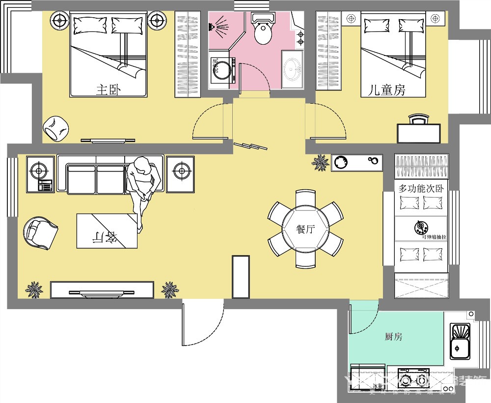 小区:融创洞庭路壹号 面积:66㎡ 户型:二居 风格: