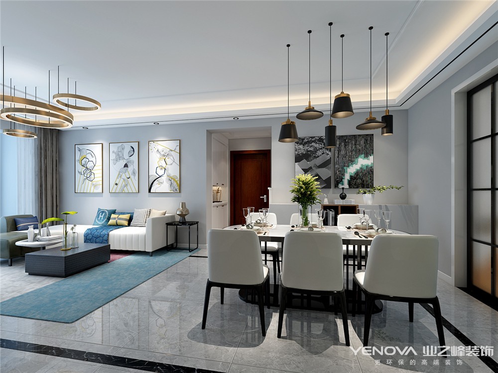 本案的设计风格为北欧现代、简约混搭,在空间设计上讲究层次感,客厅、餐厅注重储物空间的设计,重视文化意蕴;配饰擅用装饰画、盆景,精致的工艺品加以点缀,营造具有文化韵味和独特风格,体现中国传统家居文化的独特魅力。