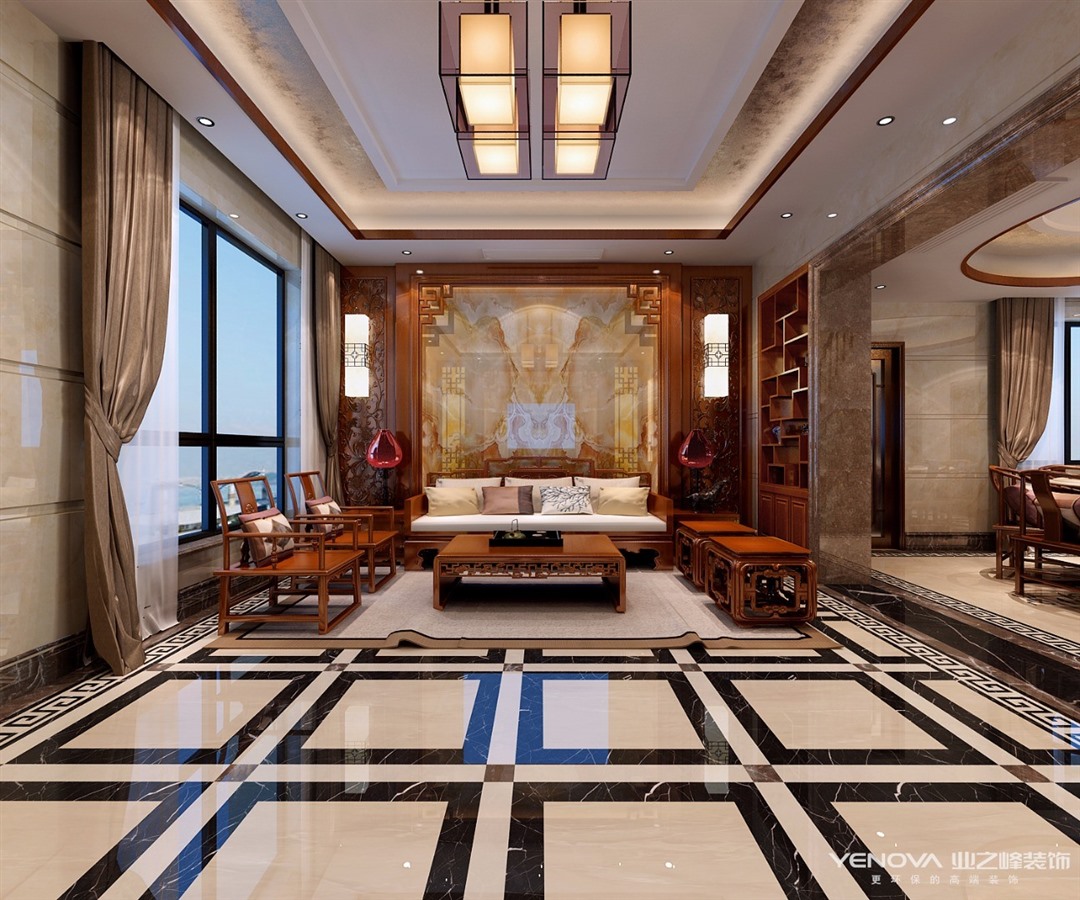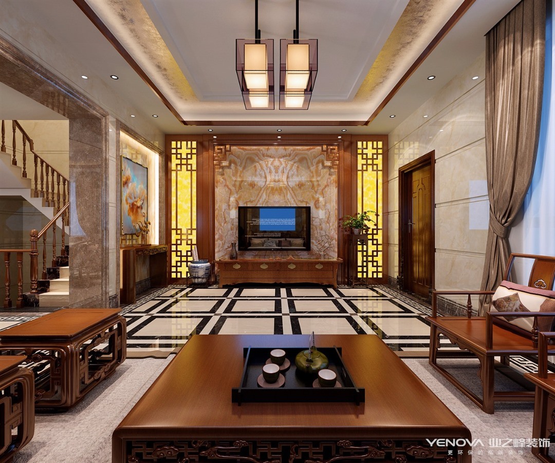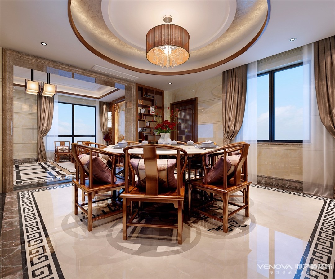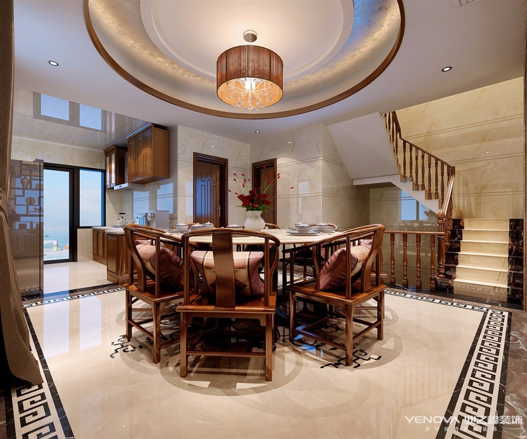 笔蘸性情,舞一阕水墨横斜,轻勾漫染,一枝一叶归乎情致。本案为现代中式风格,人间有爱是清欢,一餐一食皆美味。餐厅的中式精致挂画搭配现代的绝美吊灯,古韵今律,精致唯美。光的奏鸣曲造出了流光溢彩的繁花,备餐区的身影成为无法磨灭的优雅。光与影的交错,瓷与木的衔接,黑金的碰撞,你,就是今天的主角。