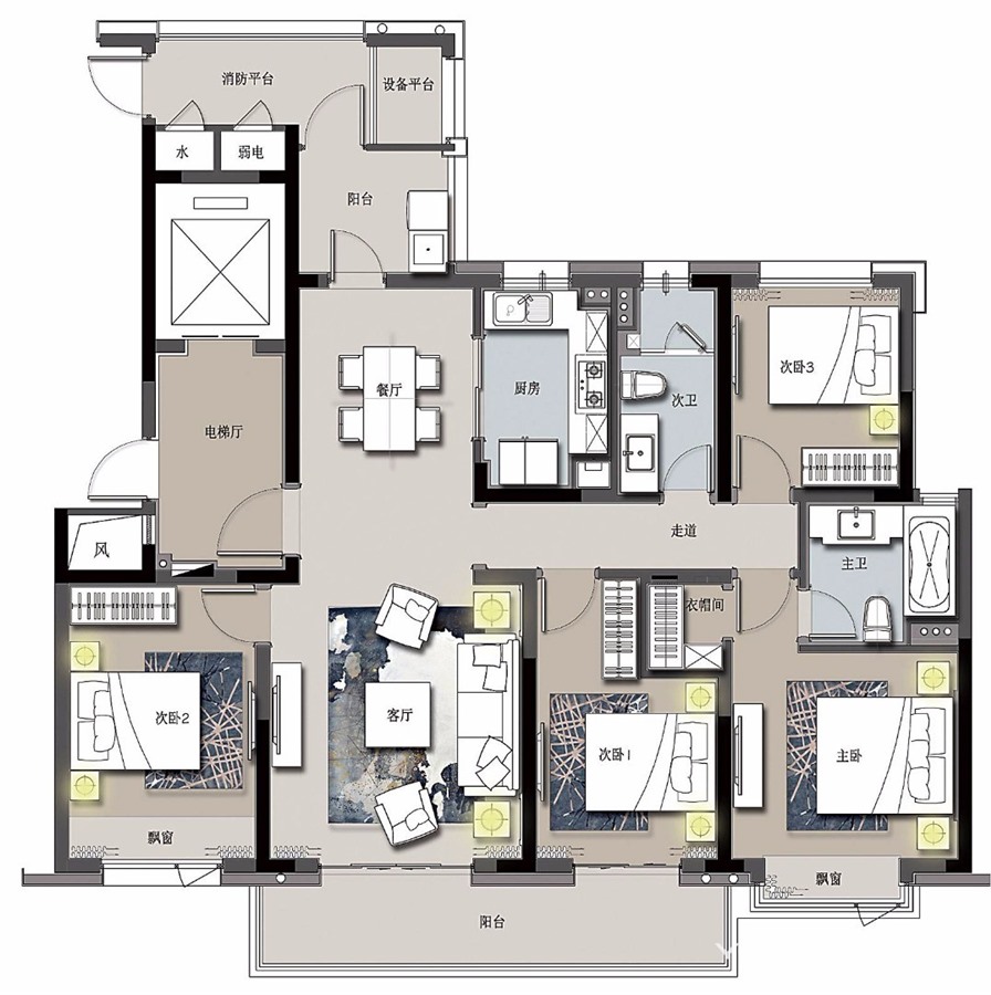 小区:龙湖嘉誉 面积:220㎡ 户型:五居 风格:现代简约风格