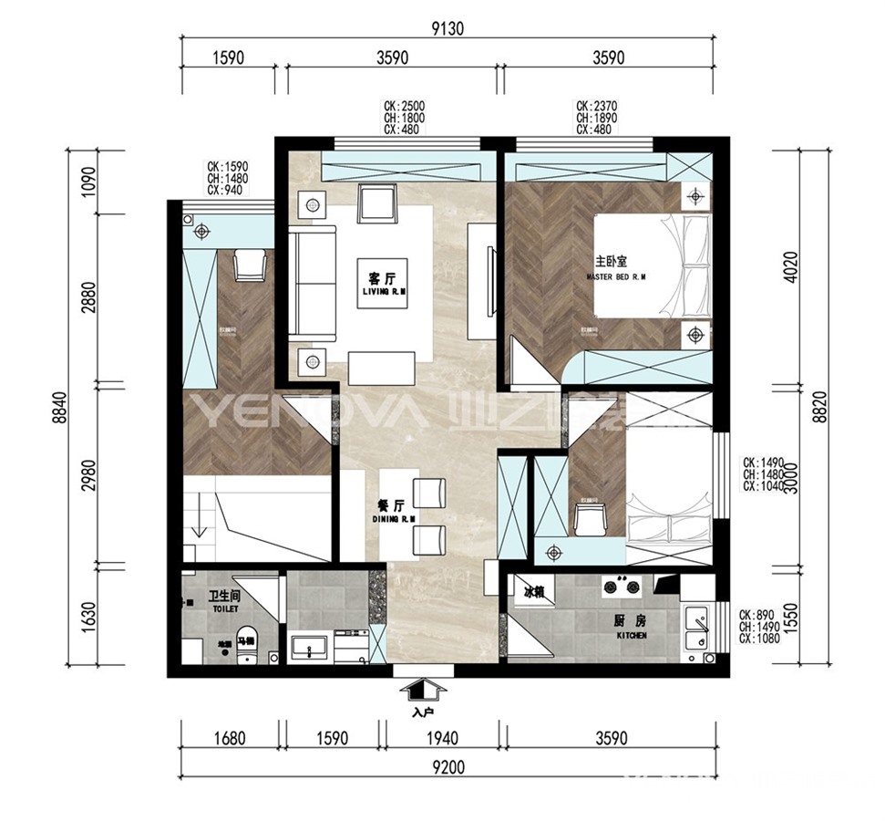 小区:名门国际 面积:100㎡ 户型:三居 风格:现代简约风格