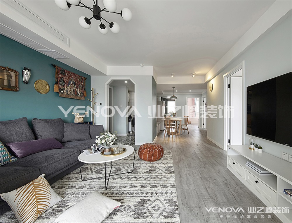 客厅作为待客区域,一般要求简洁明快,同时装修较其它空间要更明快光鲜,通常使用大量的石材和木饰面装饰;美式喜欢有历史感的东西,这不仅反映在软装摆件上对仿古艺术品的喜爱,同时也反映在装修上对各种仿古墙地砖、石材的偏爱和对各种仿旧工艺的追求上。总体而言,美式风格的客厅是宽敞而富有历史气息的。