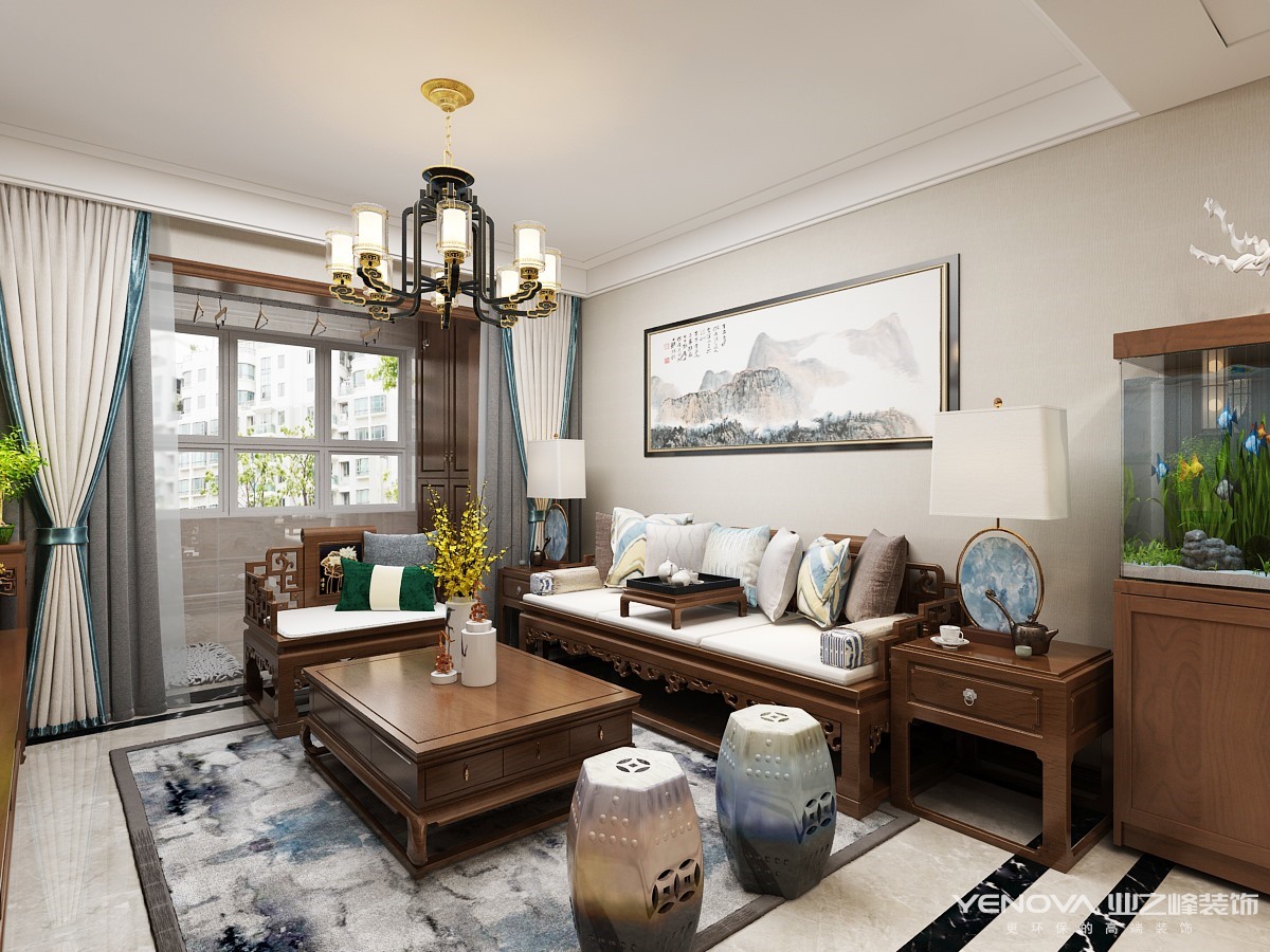 小区:中海·华山珑城 面积:128㎡ 户型:三居 风格:新中式风格