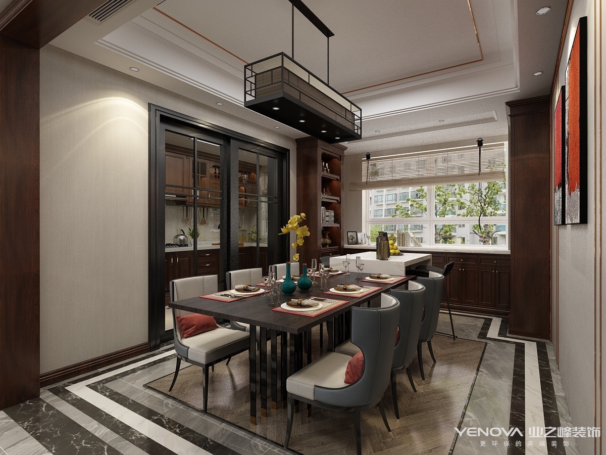 新中式风格非常讲究空间的层次感,在需要隔绝视线的地方,则使用中式的屏风或窗棂、中式木门、工艺隔断、简约化的中式"博古架",通过这种新的分隔方式,单元式住宅就展现出中式家居的层次之美。再以一些简约的造型为基础,添加了中式元素,使整体空间感觉更加丰富,大而不空、厚而不重,有格调又不显压抑。