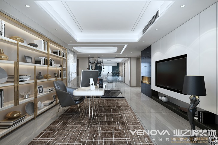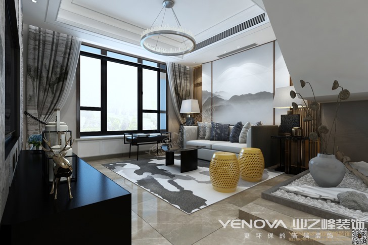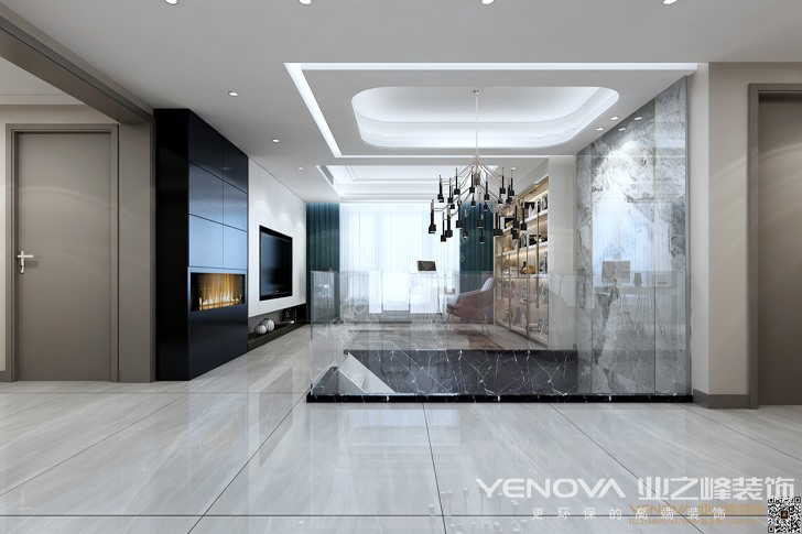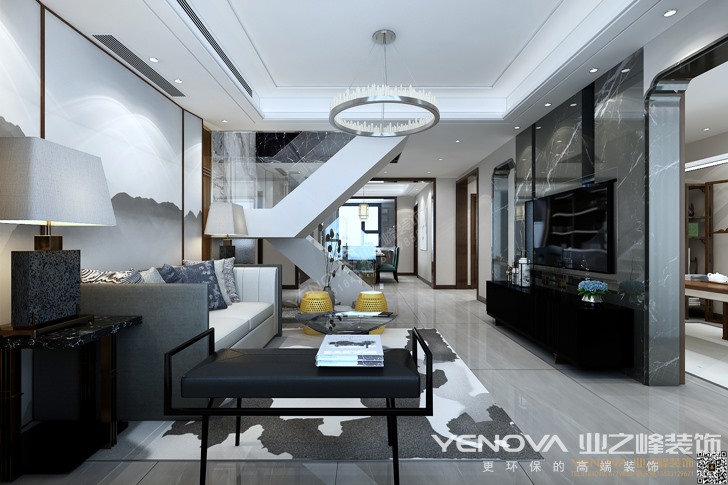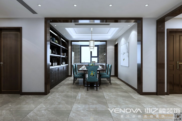 秋窗日午,小厅无人。灰白与墨绿穿映于其中,加上金属元素的默契融合,辅以大理石墙与山水画墙布,雅致周到,极度契合主人对高端的追求,以及对中国传统文化的缕缕欢喜。透露出的是高雅的品味与独到的审美。