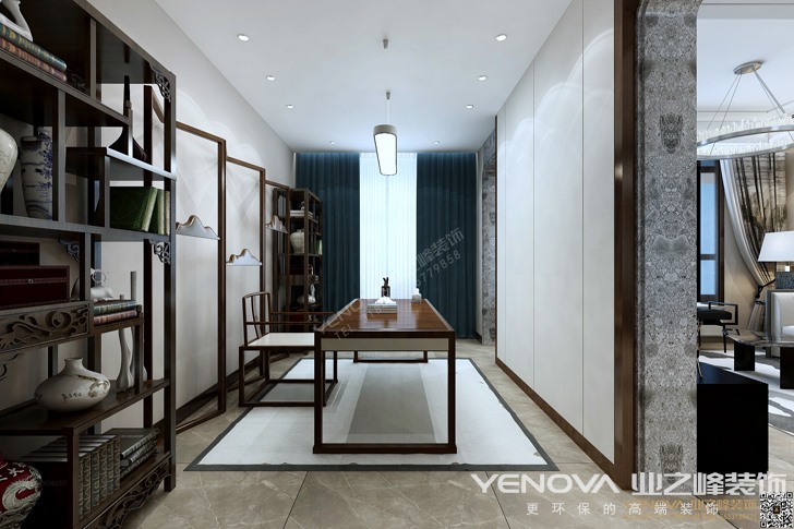 书房的设置,颇为自然通透,提笔书写之时,抬头的一抹绿色,仿佛也在欣赏。