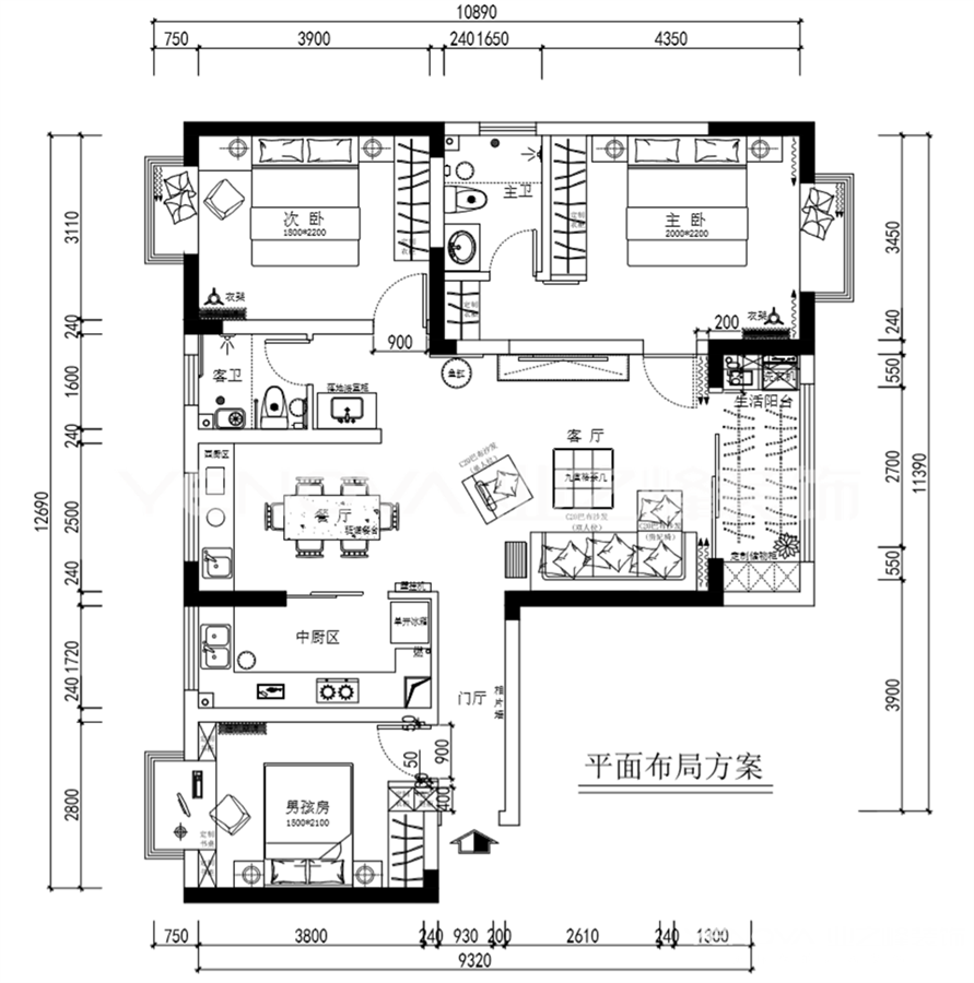 小区:万世华庭 面积:96㎡ 户型:二居 风格:现代简约风格