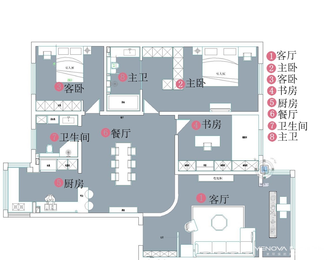 136㎡三居现代简约风格水木清华
