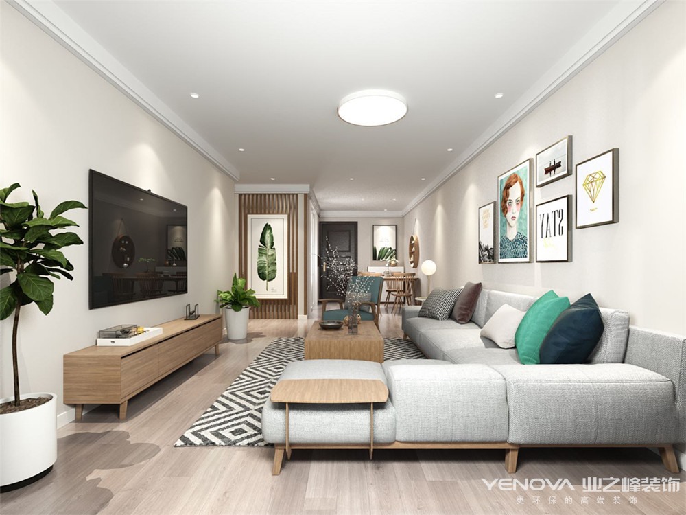 本案设计定位为北欧极简风格,房子的女主人长期在欧洲、北美工作生活,年轻干练、做事认真、雷厉风行,对自己的想法与要求明确且不容更改,这是最初接触她给我留下来的印象,所以在设计之初重点考虑的是在风格上定位在实用功能与风格整体相结合,沿用北欧极简风格,并采用黑白灰三色系对比的设计手法,整体墙面面采用白乳胶漆处理,局部运用深色实木造型做突出处理。