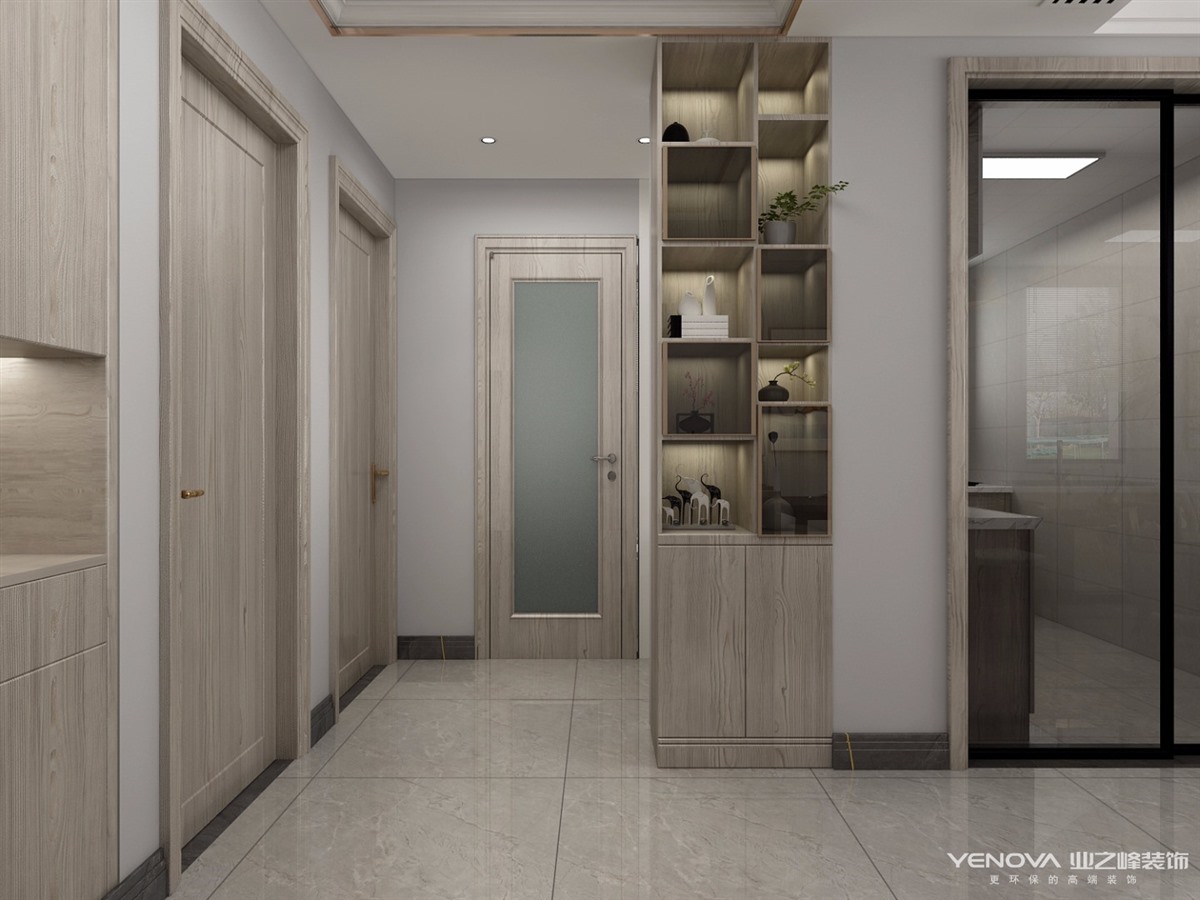 首先再进门口左手边的墙去除,改成鞋帽柜来增加进门口的换衣换鞋。厨房外扩留出冰箱的空间。