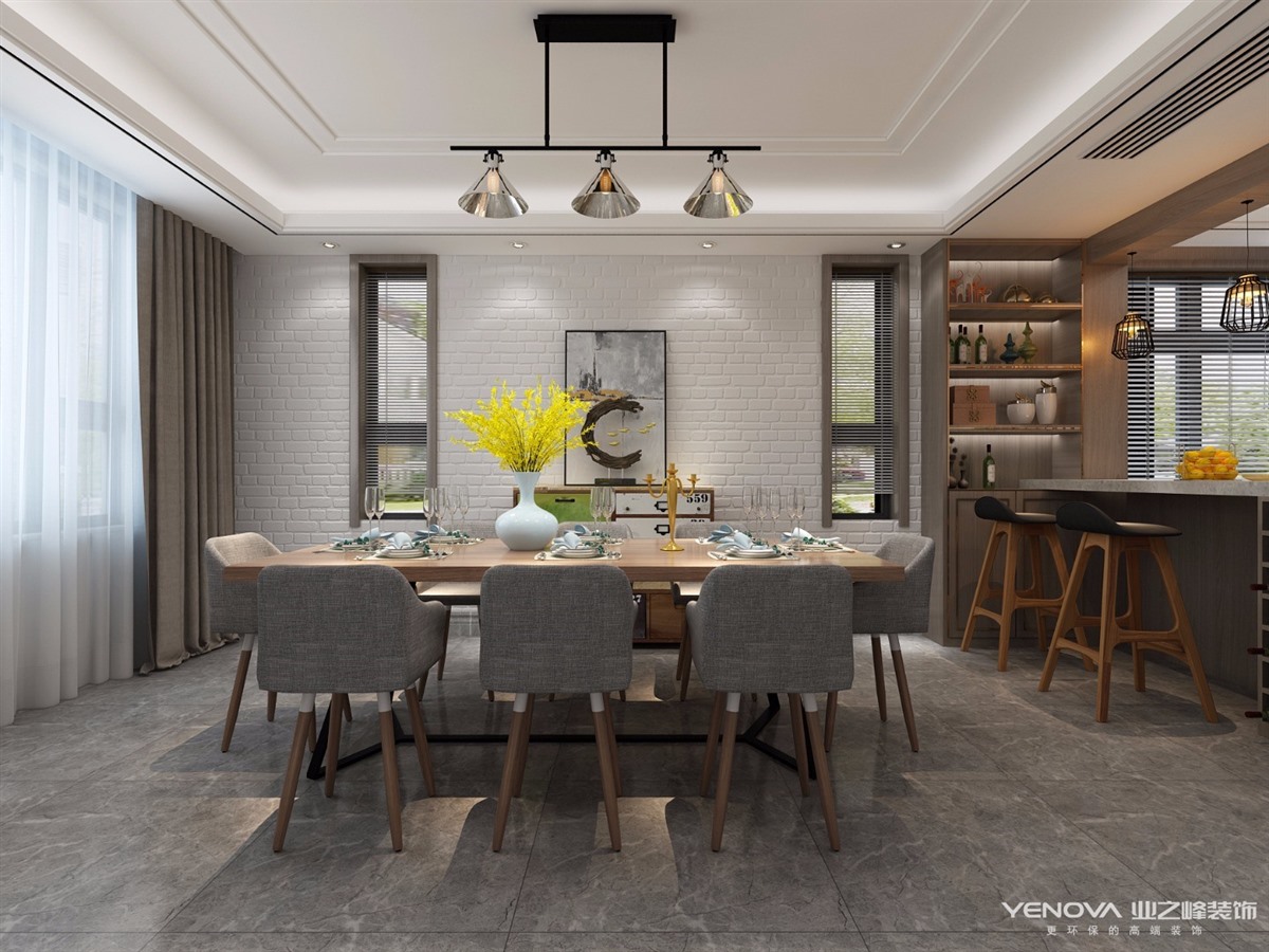 客餐厅设计拥有舒适的功能性,超大面宽的玻璃未使用一道分隔,将光线与户外风景纳入眼帘,