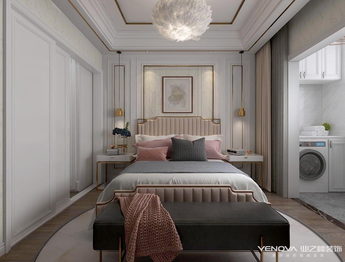 从整体的设计上来说,摒弃了传统法式风格所突出的繁复、奢华的装饰与甜腻的色泽,而选择淡雅、低调的设计来打造现代式的轻奢感。主要突出对称的布局方式,再结合几何线条与浅色的空间色彩,打造出一个法式轻奢主义的空间格调。