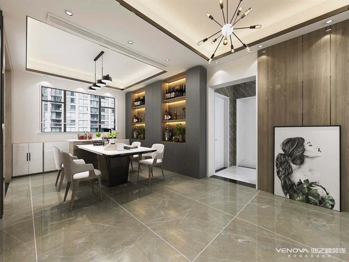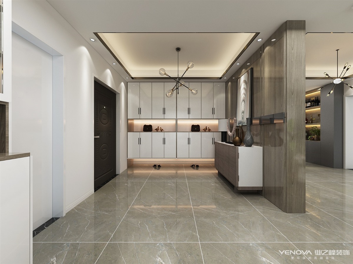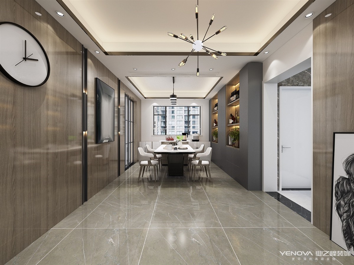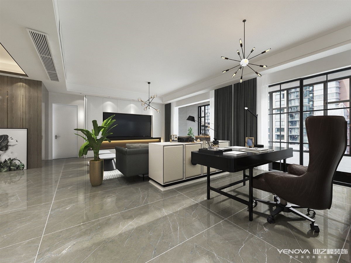 本案的主题为港式轻奢风格,简约俐落的质材铺叙与敞明大方的格局尺度,是轻奢风定调的设计居宅中,不可或缺的重要元素。在案例中,以陈设艺术品及金属线条材质来营造大气、自然、轻奢的装饰美学氛围。墙面、地面、家具陈设等均以简洁的造型、精细的工艺为其特征,强调品质感和细节处理。在色彩搭配方面以暖色为主,棉麻的搭毯、直观大气的金属材质,带着淡淡的随意,随着轻轻的希冀让人感受到的是空间弥漫的温馨与舒畅。