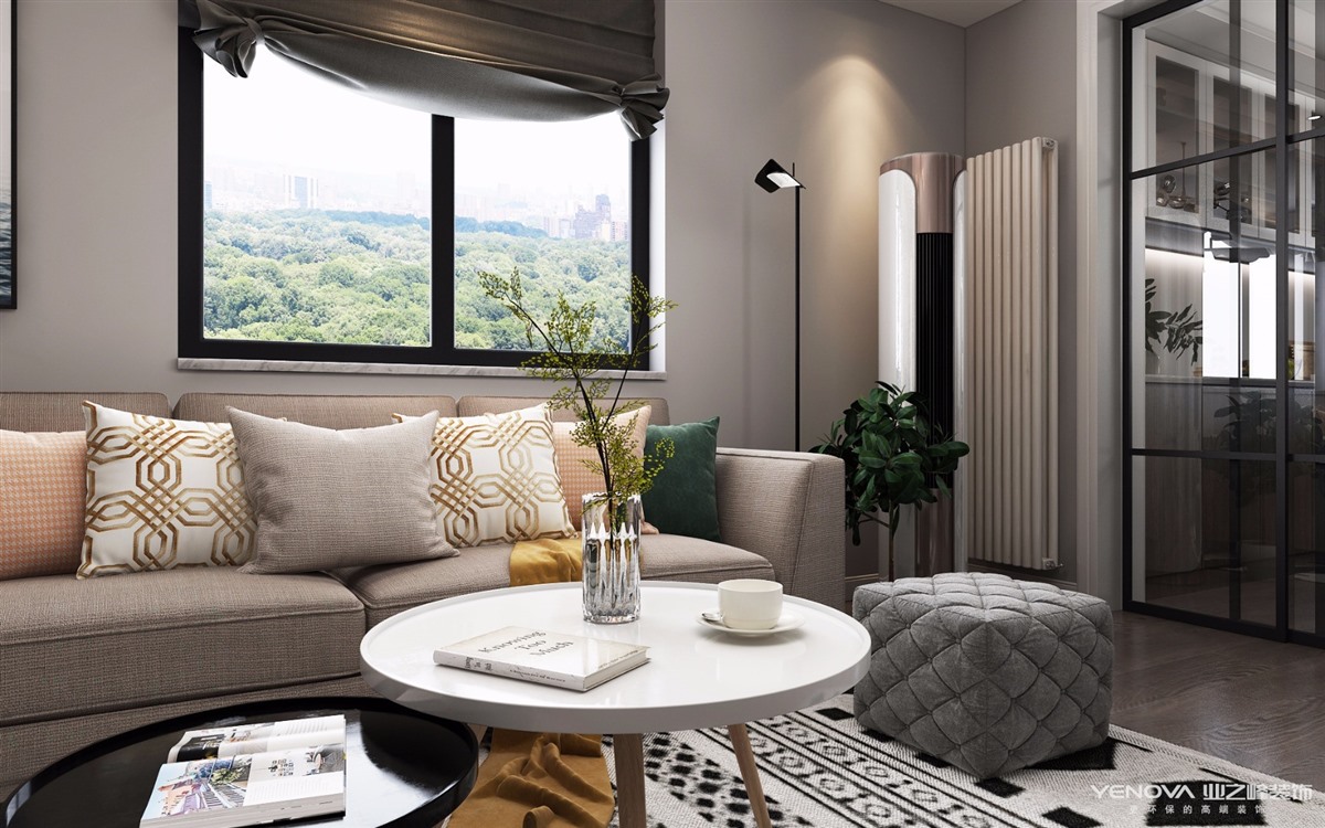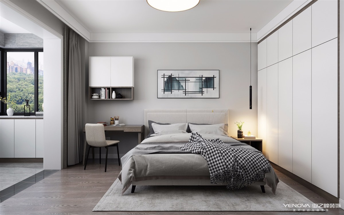 遇一人白首,择一城终老.客厅里每一个角落都是经过精心布置的,家人希望给孩子成长的陪伴和空间,所以没有电视柜的设计;米色布艺沙发搭配原木色的茶几,大象灰的背景板辅以一副现代简约抽象画,色彩对比鲜明,空间层次感十足。家具选择上运用了一系列的原木风家具,朴素的原木纹能给家居带来自然气息,传统的定制工艺柜特别有温度与质感。