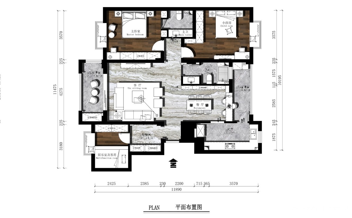 家庭中最重要的是“凝聚力”,所以扩大的公共区域成为一家人交流,玩耍培养感情的场所。利用大量的木质元素带来温暖柔和的氛围,大面积的玻璃窗让室内拥有良好的采光,光线的照耀下,大地色系的空间沉稳又舒适。除了套房式的完整设计,总体氛围融入了时尚、舒适内敛的设计元素,突出居者的沉着硬朗、睿智深刻的生活阅历及艺术品味,展现出空间的立体感受和特有的文化品位,同时也提高了空间使用者对生活品质及舒适居所的完美追求,也呼应每位居住者的个人喜好,沉稳或年轻的品味,诠释独具匠心的寝居风情。开放式的布局让客厅就算在料理,孩子们的一切动态也都呈现在眼前,设计师利用地面材质的不同让各功能区互相连通却又各自保有区别,没有了隔断的阻挡,空气与光线自由流通,整个空间都弥漫着欢乐安逸的气息。