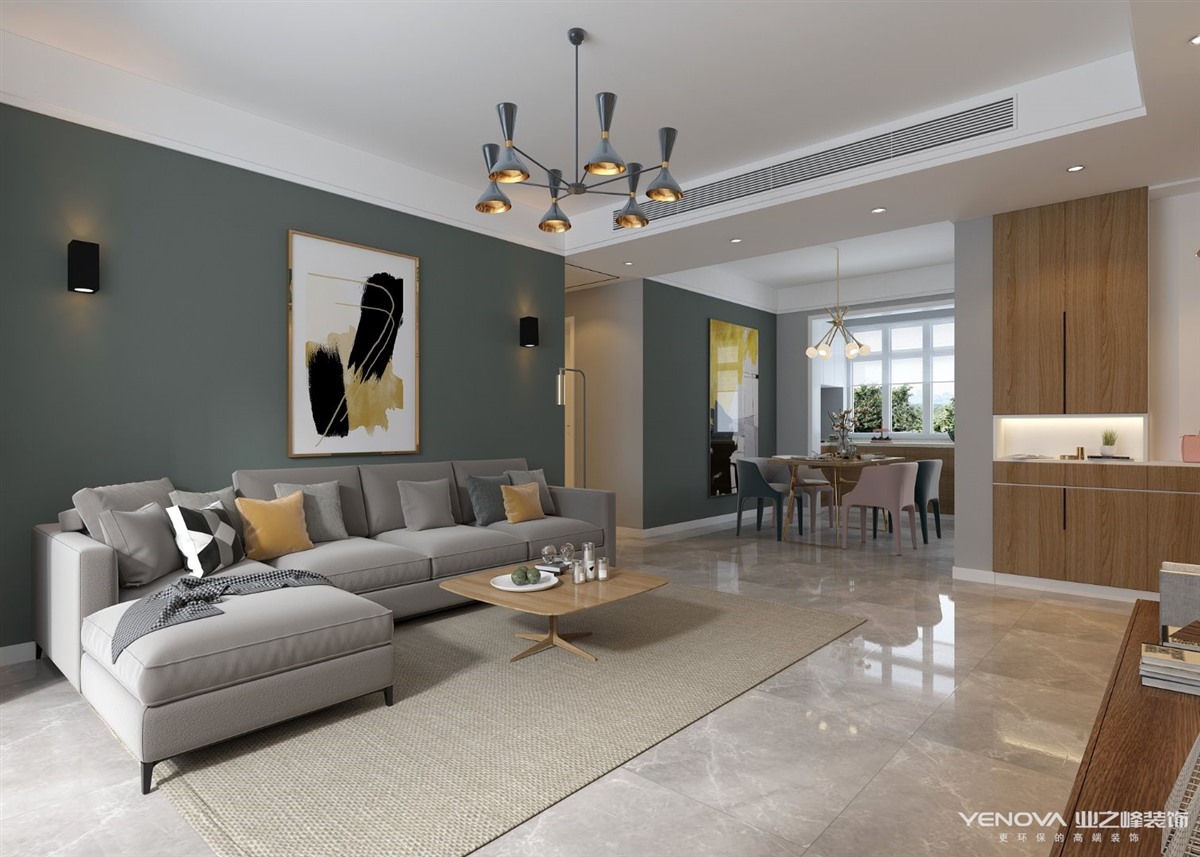 小区:路劲东城 面积:132㎡ 户型:三居 风格:现代简约风格