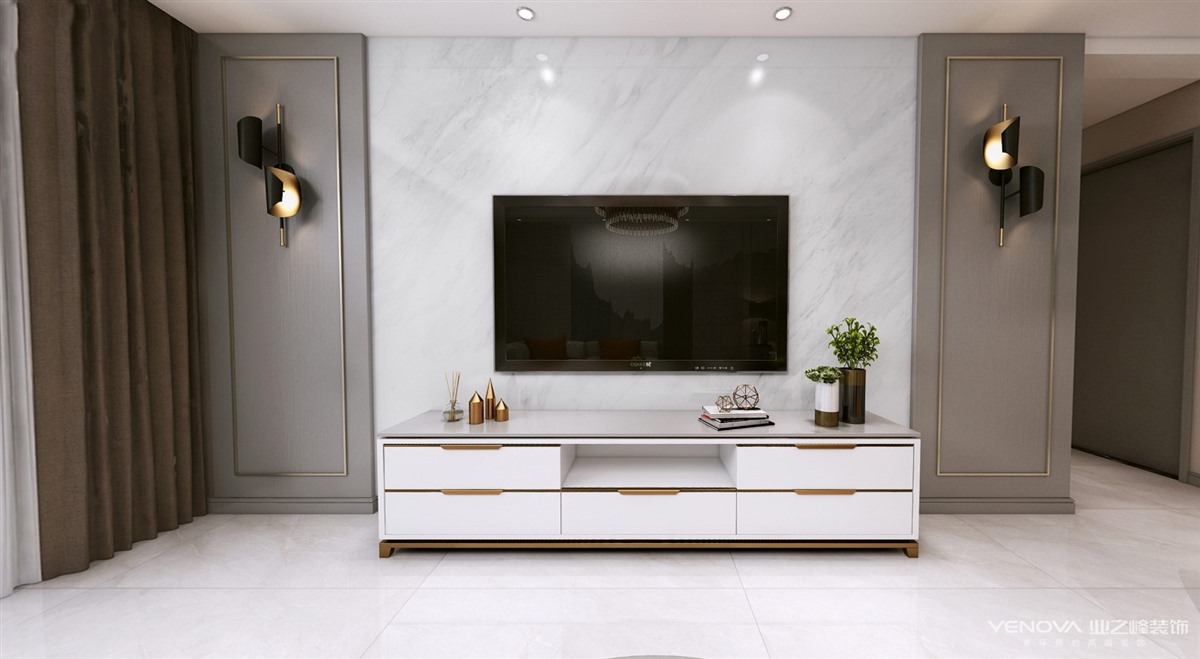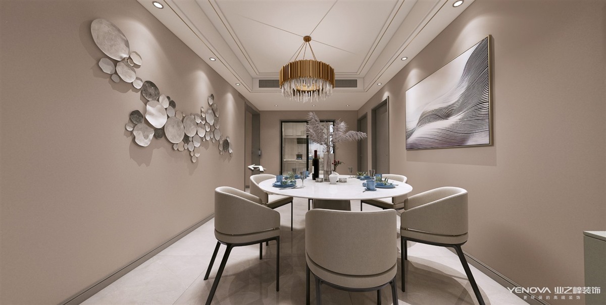 客厅以暖色调为主色调,以深色系作为基础色,生灰的纹理地砖体现出高品质的生活,素雅的布艺沙发与茶几形成一体。餐厅则以米黄色为背景墙加上棕红色的家具使整个空间优雅,大方。两个空间的颜色搭配,使空间层次更为分明。