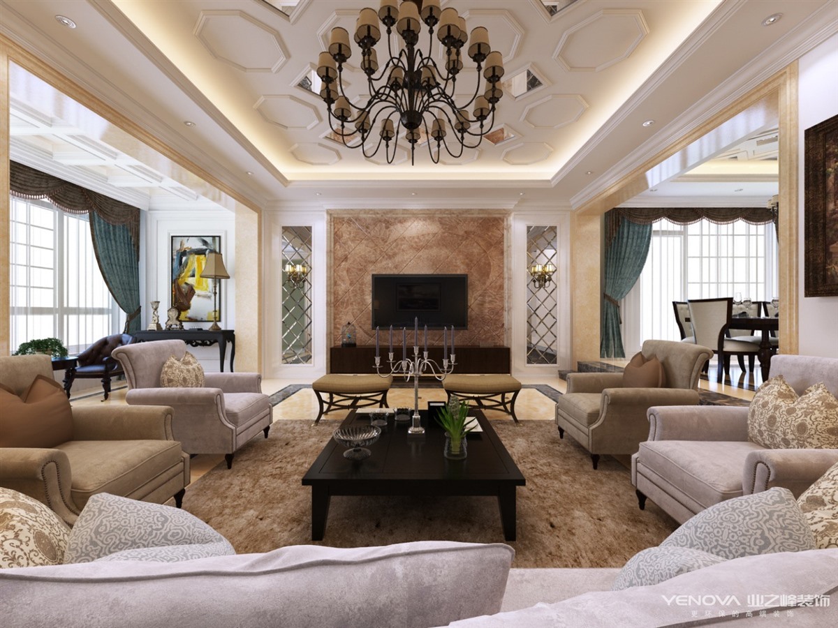 本案大面积的落地窗使得光线更加自然柔和,不同的顶面造型和立面造型使得每一个空间都是别具一格,处处体现出业主的品质追求和对美好生活的向往。为了迎合出业主的个性与品位,设计师将设计风格方面界定成浪漫高贵的简约欧式风格,我们尊重原有的大致户型,去除不必要的墙段,稍微改变格局,在材质上运用大理石华丽多彩的织物、精美的地毯、多姿曲线的平安家具,让室内显示出豪华、富丽的特点,充满强烈的动感效果。在设计上灵巧地运用不同材质、造型把整个空间有机地融为一体!
