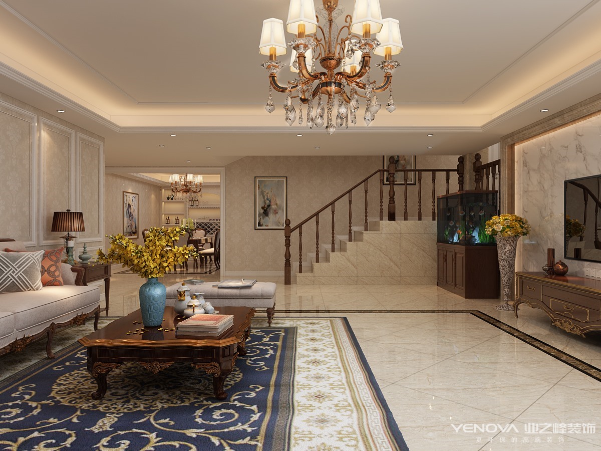 欧式,面积:260平,位置:济南市市中区民生大街22号。本案是典型的欧式风格,情调以华丽的装饰,浓烈的色彩,精美的造型达到华贵的装饰效果。客厅选用大型吊灯,并用华丽的支型吊灯营造气氛。米白色的家具与整体色调协调,大面积的蓝色地毯使空间变得沉稳。