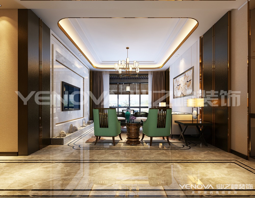 4口之家,男女主人和2和孩子,男女主人之前主要在深圳、香港那边做生意,孩子偶尔回来住一下,考虑近2年回南阳来长期居住,希望自己的新家有港式轻奢的感觉,但也希望加入一些中式传统的文化元素。本案是以现代轻奢为主,加入一些中式元素,室内的主要材质以金属线条、木质护墙板、石材、硬包为主。