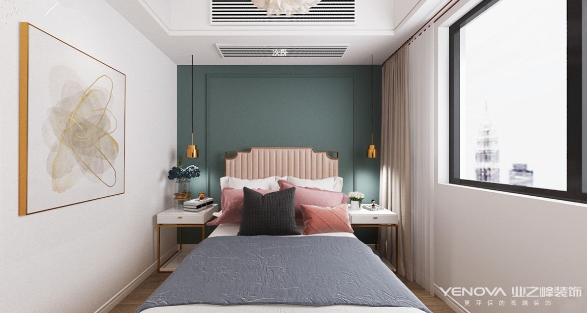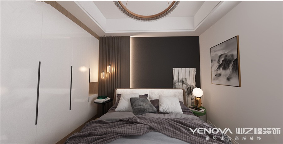 在卧室的设计中,设计师为了整体看起来比较大,设计了大量的衣柜,增加储物空间,让更多的空间作为活动空间,这样整体更加大方整洁。