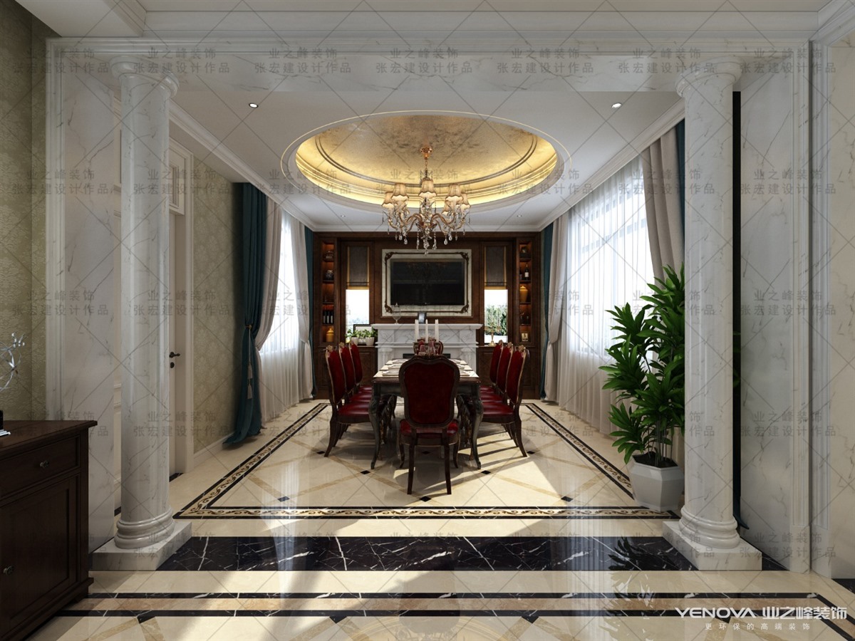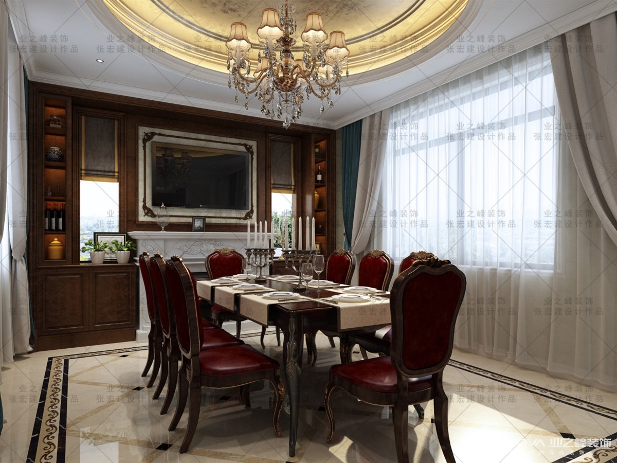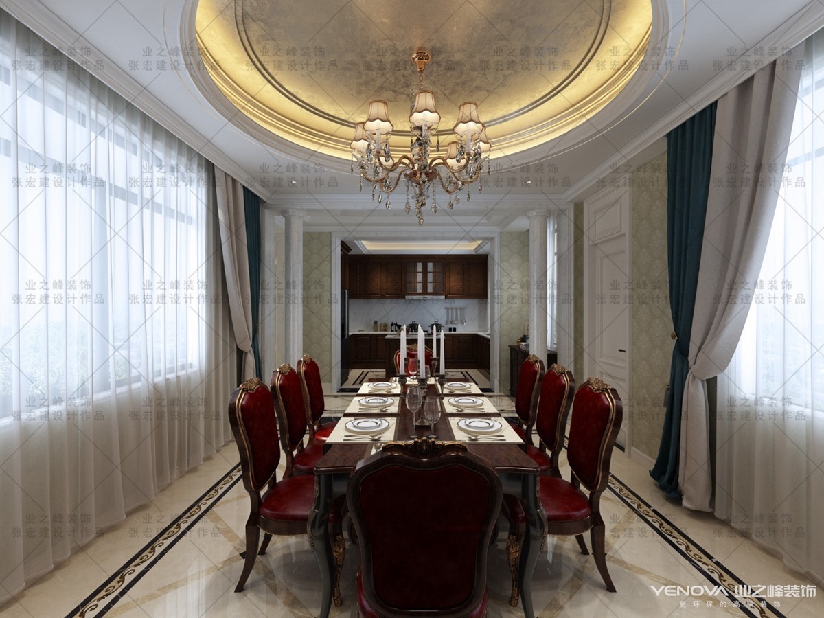 简欧风格衍生于古典欧式风格,它摒弃了古典欧式复杂厚重的装饰肌理,又保留古典欧式的材质与色彩。简欧风格中带有一定的古典欧式符号,本方案顶、壁、门、窗的线条变化丰富流畅,带有顶花、压线、大面积油画、白色木格窗等具有代表性的欧式符号。同时也会通过欧式家具来烘托整个方案的基调。