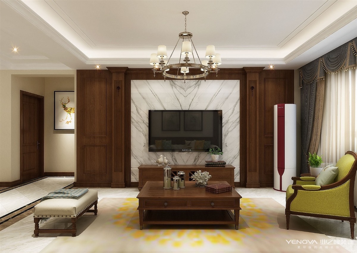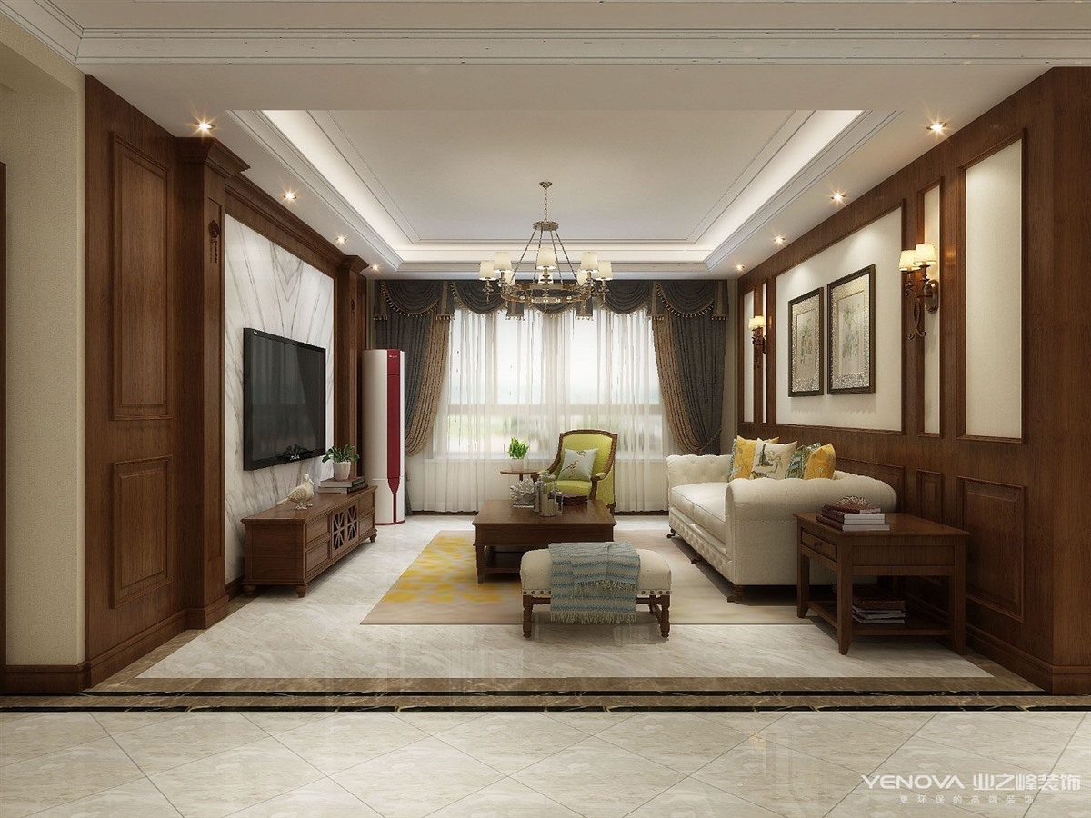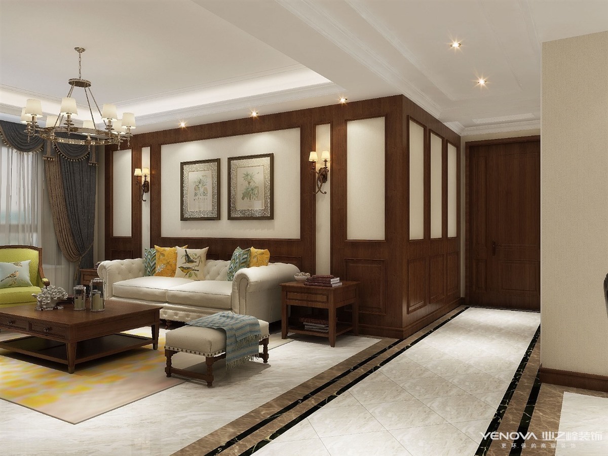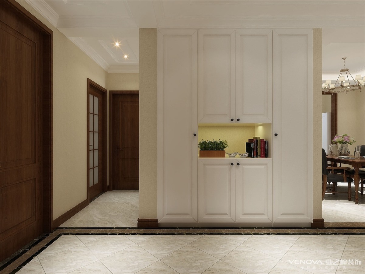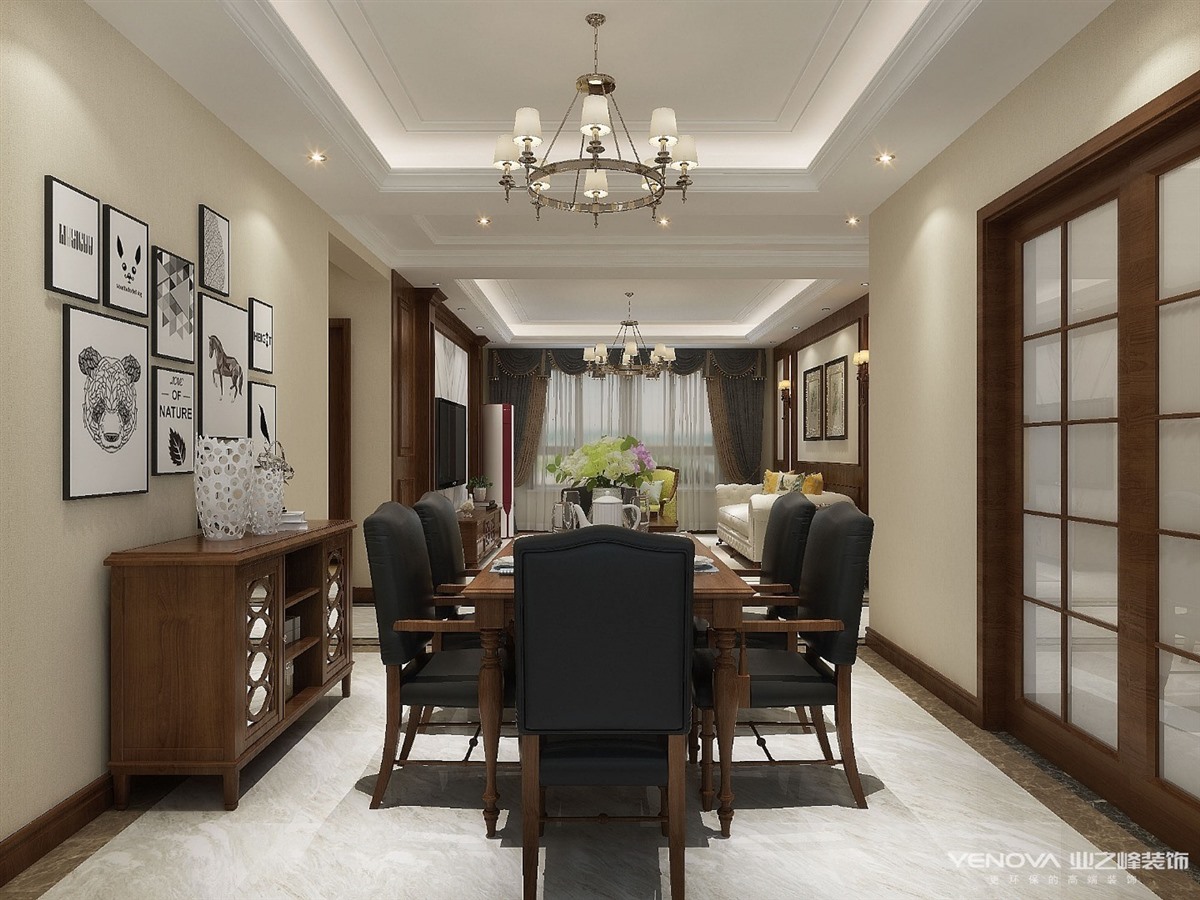 业主一家四口,孩子和大人一起居住,需要卧室较多兼备孩子的办公区域和家长的私人书房,家里储物需要大量空间,又要美观隐蔽,所以在过道区域设置了独立的储物空间,同时也为家里老人添加了休息空间,,客厅与餐厅浑然一体,使整个空间更加明亮和温馨。整体空间以古典美式为主,搭配线条的装饰风格,达到了自然与生活浑然一体,整体环境干净明亮但并不冰冷。各个空间满足客户需求