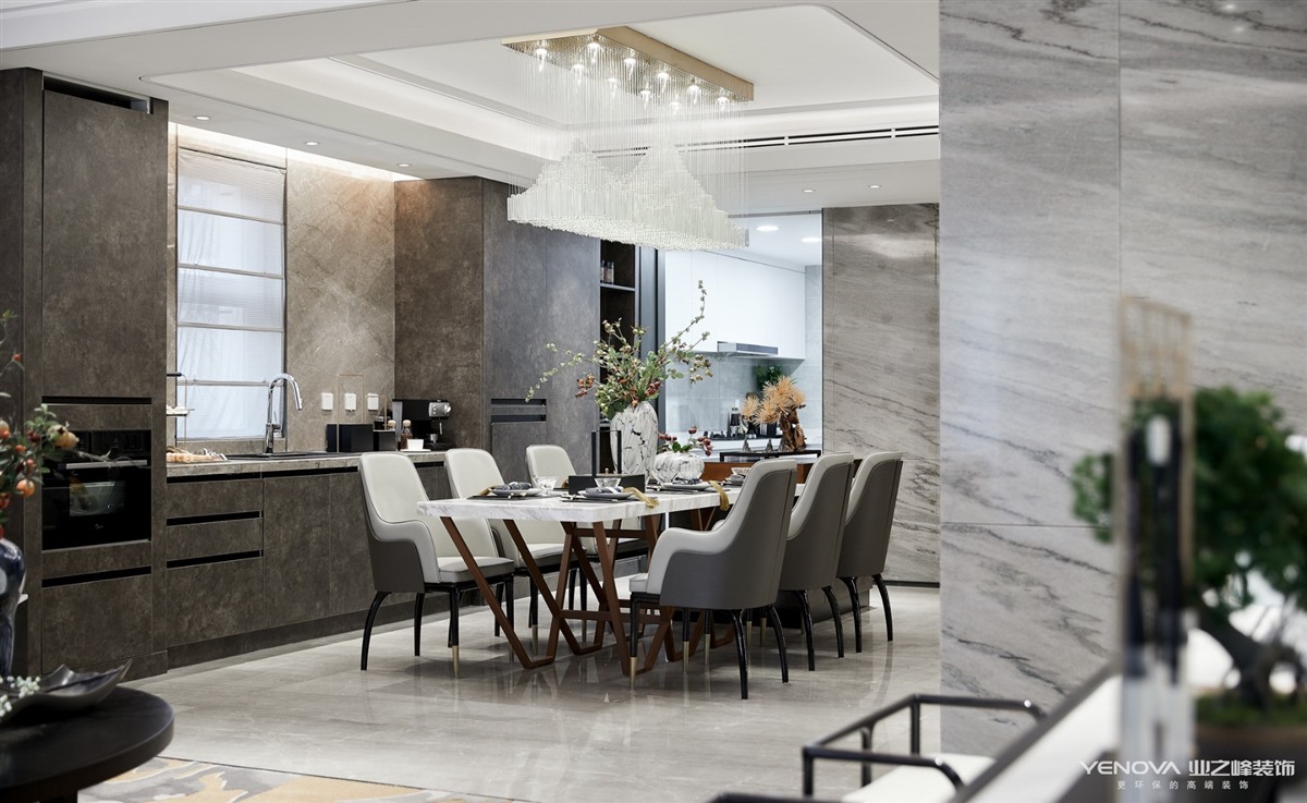 温润质感、低彩度的细腻,将生活形态和美学意识转化成一种无声的设计语言。大而不空、厚而不重,轻描淡写地几笔点缀,犹如山间的松叶洒落在葱郁的林间,画中有画,景中有景,带给一家人舒适优雅的生活环境。