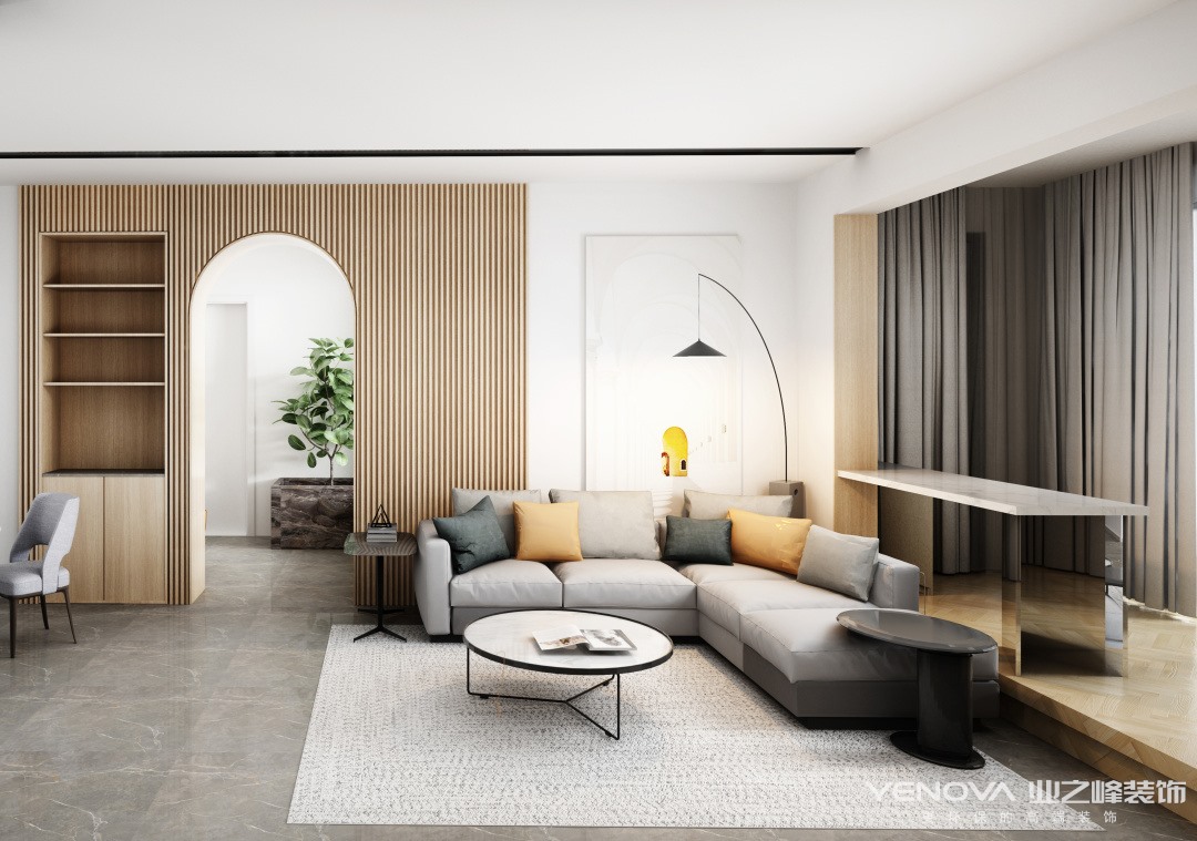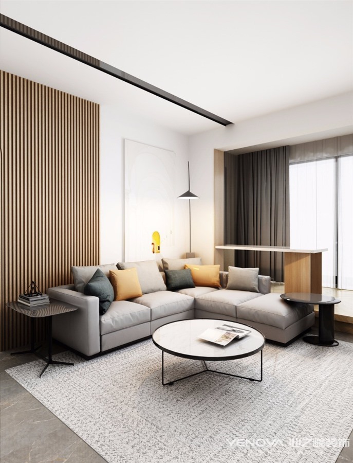 现代简约风格即用几何线条修饰,外观简洁流畅,立面立体层次感较强,外飘窗台外挑阳台或内置阳台,合理运用色块色带处理的一种装修风格。体现了现代生活快节奏、简约和实用,但又富有朝气的生活特征,没有过分的装饰,从功能出发,讲究生活的舒适、空间结构的明确美观,强调外观的简洁、大方。现代简约风格其着重点就在于简,即外形简洁,室内空间朴素、大方,但其功能性强。从细节上来说,即物品的摆放要整洁,装饰的物品要少,在颜色和布局上来说,颜色的种类最好不要太多,布局要大方,格调要简洁、素雅。在如今的繁忙生活中,简洁大方的设计风格更受人们的推崇,看惯了现在生活中的繁华,与花天酒地,经过了一整天的忙碌,我们更想在一个安静、舒适、宽敞明亮的环境中生活,来消除视觉的疲劳,忘记都市的喧嚣,享受生活的宁静,而现代简约风格的室内装修设计满足了这一需求,现代简约风格亦是现代流行装修风格的一种。