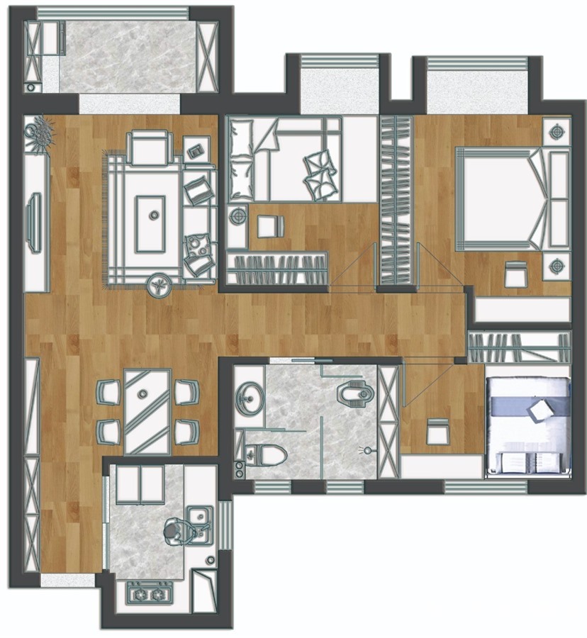 122㎡三居美式风格奥山世纪城