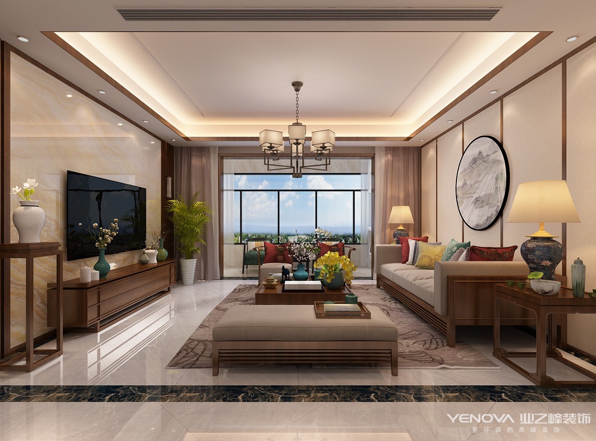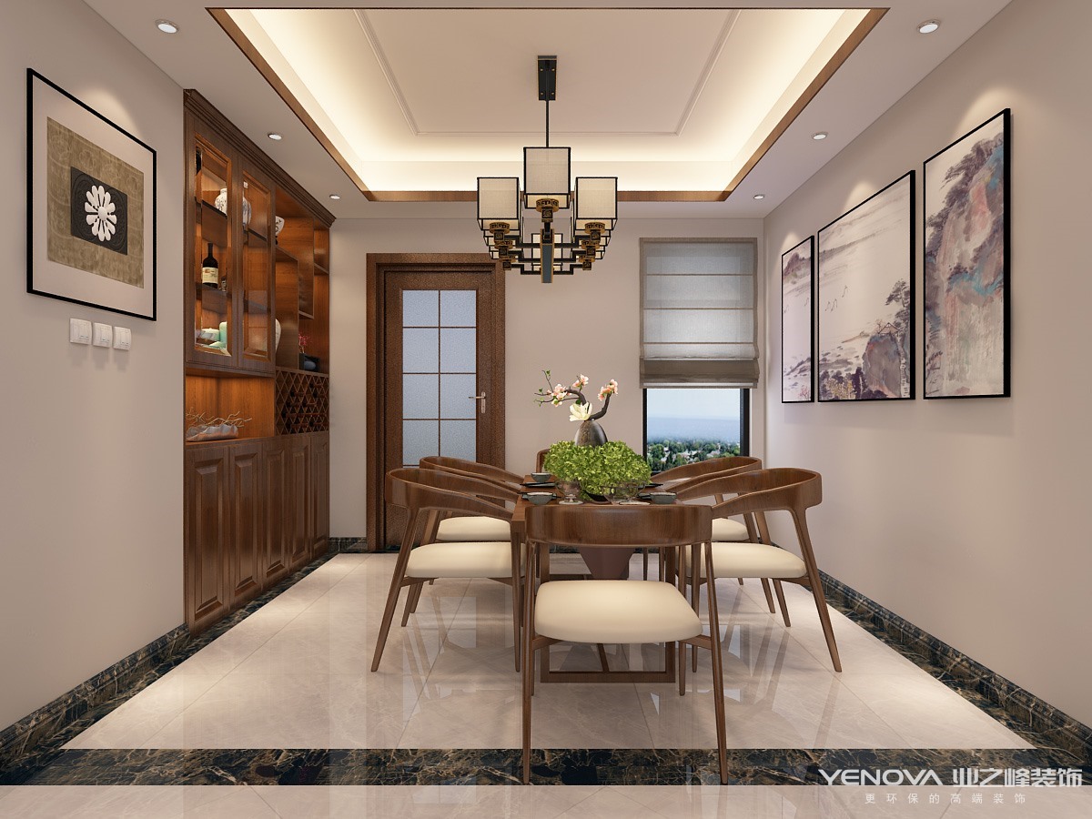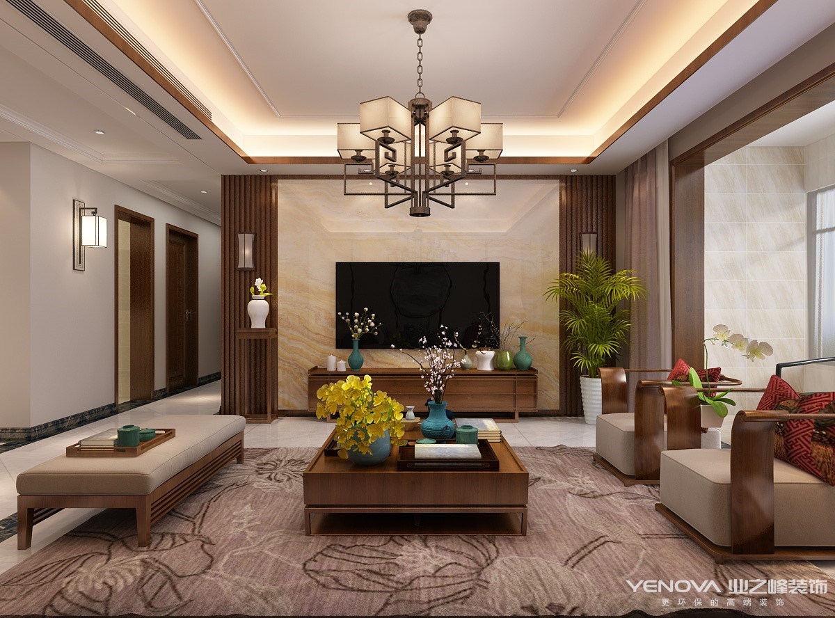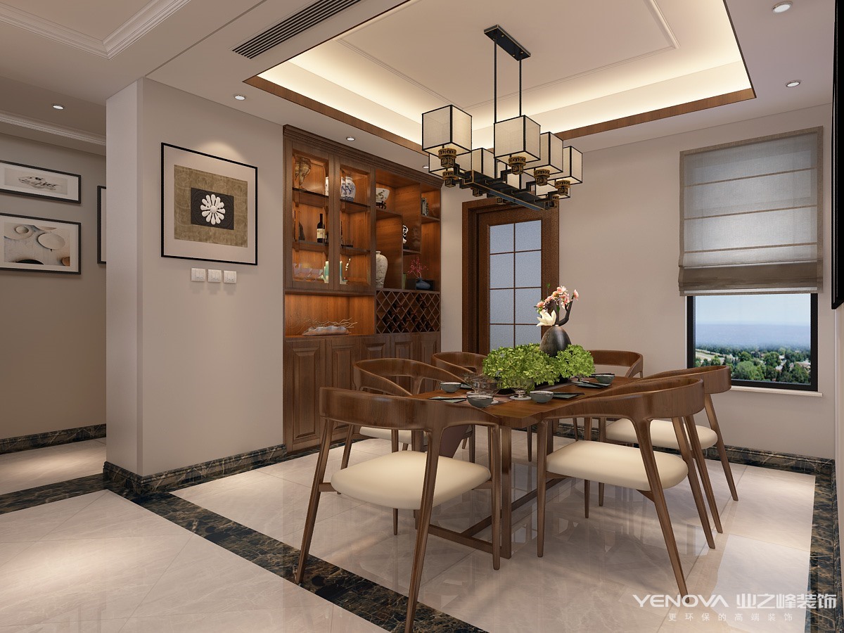 新中式风格讲究纲常,讲究对称,以阴阳平衡概念调和室内生态。选用天然的装饰材料,运用“金、木、水、火、土”五种元素的组合规律来营造禅宗式的理性和宁静环境。