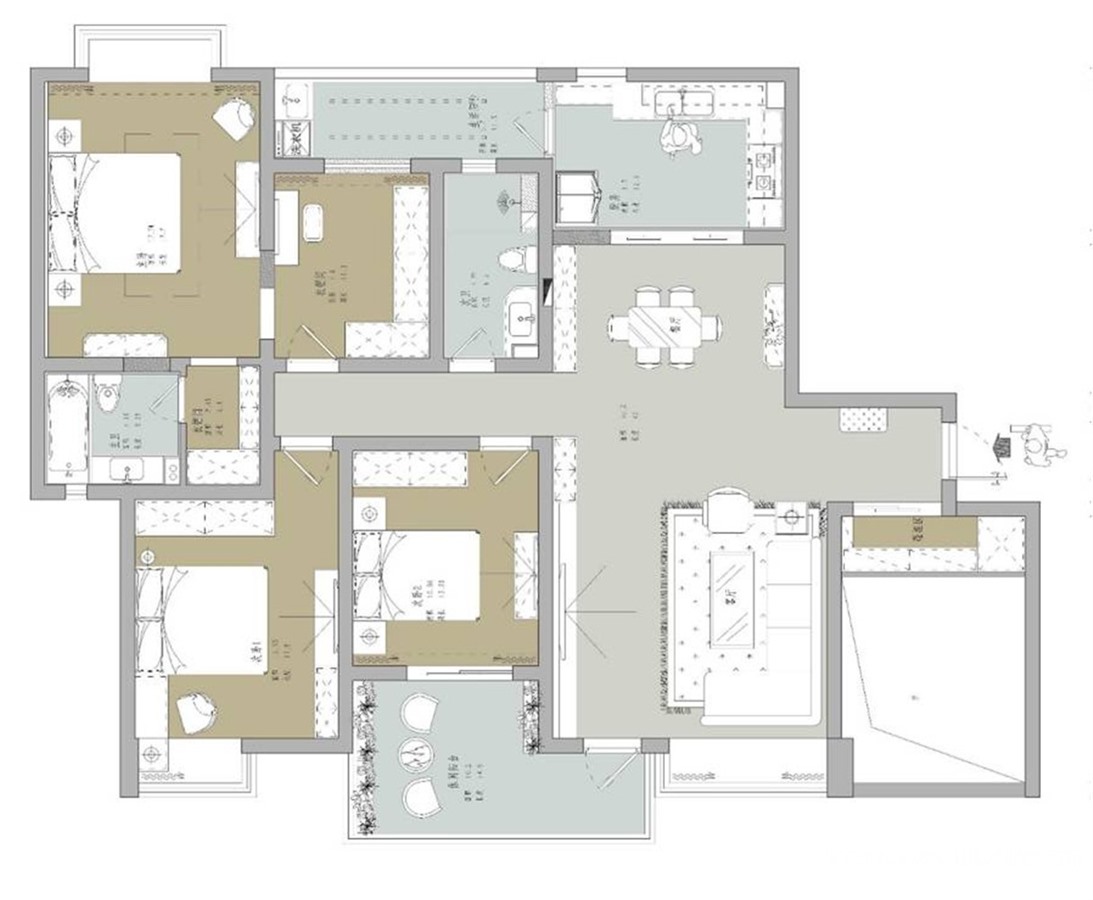 本方案为三房两厅两卫一厨的多层住宅,室内使用面积168平方米,设计风格定向为现代简约风格,简约并不是缺乏设计要素,它是一种更高层次的创作境界。在设计上更加强 调功能,强调结构和形式的完整,更追求材料、技术、空间的表现深度与精确,在满足功能需要的前提下,将空间、人及物进行合理精致的组合。室内户型方正,主卧空间面积大利用率高,每个房间都带阳台通风采光好。以追求极致的舒适度与奢侈度的前提。在软装上围绕着现代、简约这两个主题进行整体软装配饰设计