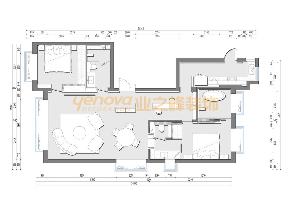 小区:鲁德海德堡 面积:119㎡ 户型:三居 风格:现代简约风格