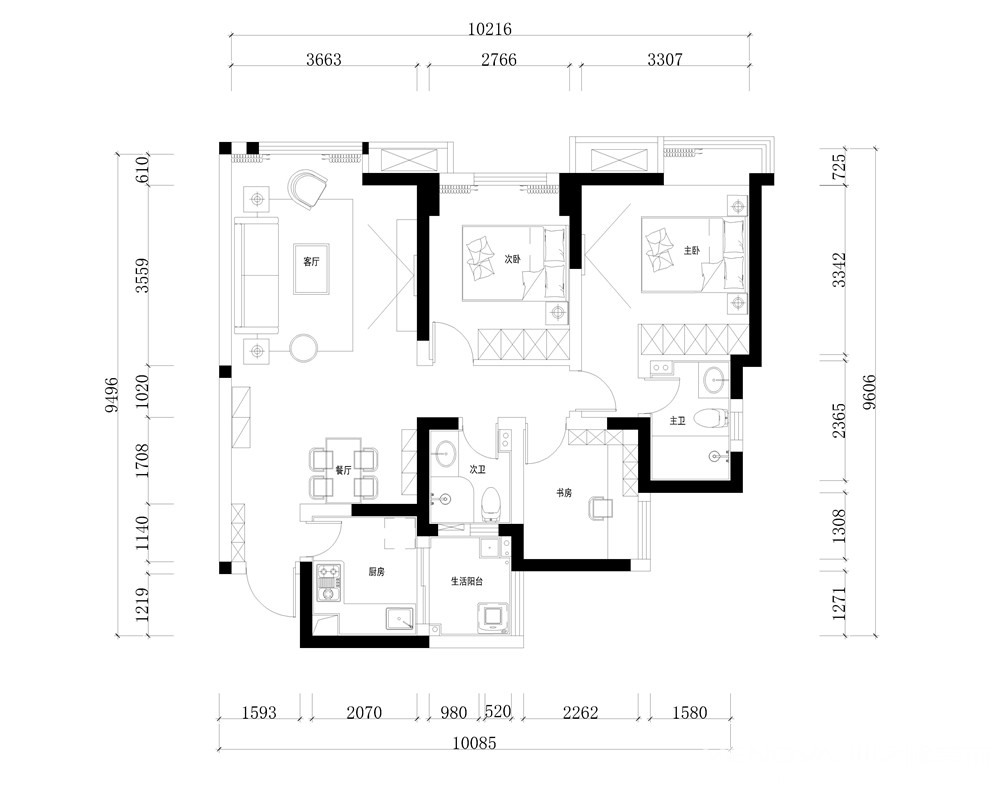 小区:华润二十四城 面积:95㎡ 户型:三居 风格:北欧风格