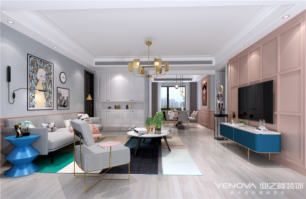 本方案风格为混搭风格。在家居设计的理念上,相较于创造纯粹的艺术作品,我们更强调对人文的关怀。家不仅是生活、工作或娱乐的场所,同时也是承载家人温情的容器。整屋以温润的木色与黑白灰为肌底,脏粉、亮蓝软装作为空间跳色出现,色彩过渡和谐,在自然光的调和下铺陈出慵懒惬意的生活情境。