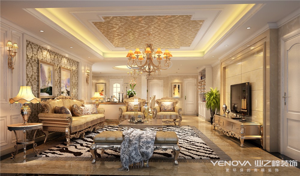 客厅:将传统欧式造型跟法式情结融合在一起,让整个厅堂显得贵气而不失雅,像一幅完美的画卷,让人身心放松。