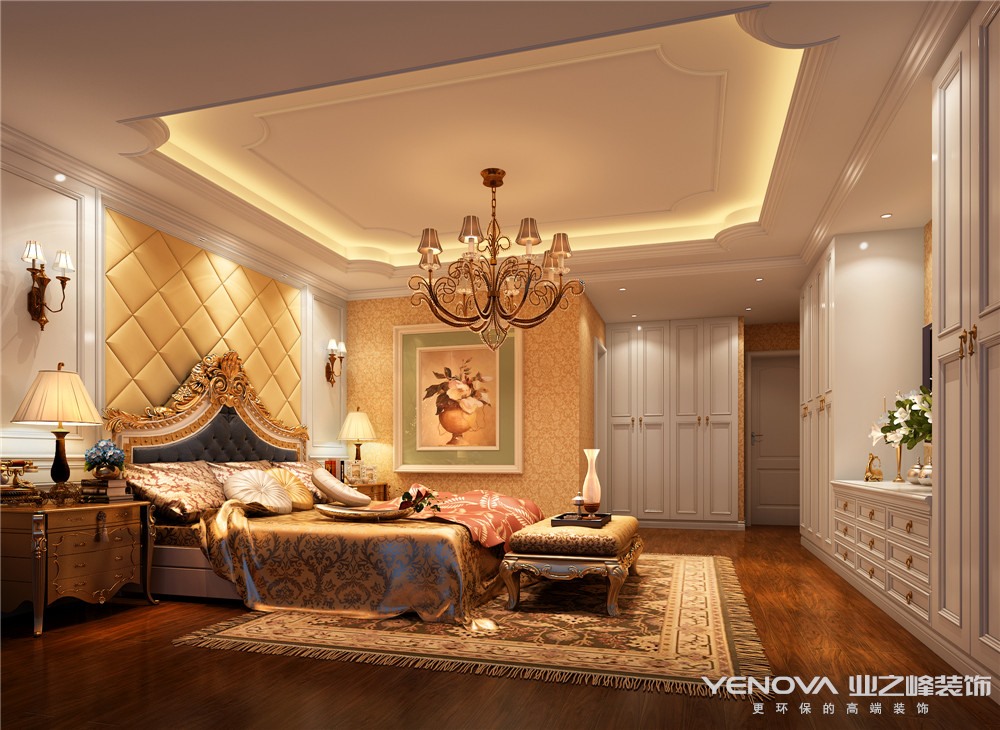 主卧室:在主卧室的功能布局上面做调整,让主卧应有尽有,表达非常完善。同时配合了柔和的暖色调,装饰材料品质感强,构成了一个质朴但是不乏优雅的空间。