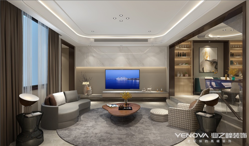 此设计方案风格定位为现代风。本案的设计重点是时尚简约,在设计上我们采取了以灰色调为主的色彩,体现了高端的感觉,灯具上我们采取了无主灯的形式,更加的贴近现代生活的简约感,整个空间看起来更加的干净简洁,在软装的搭配上采用了一些跳跃的色彩,在灰色调中跳跃出来,形成一个视觉上的强大冲击.