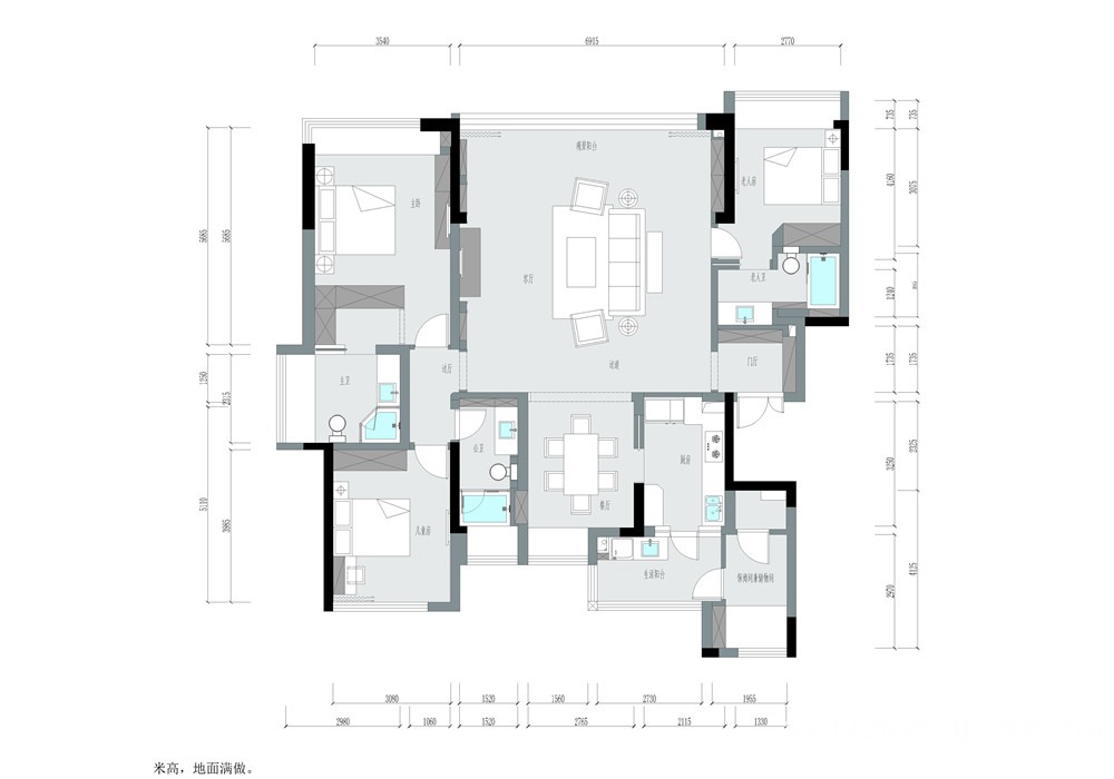 小区:蓝光公园华府 面积:163㎡ 户型:平层 风格:美式风格