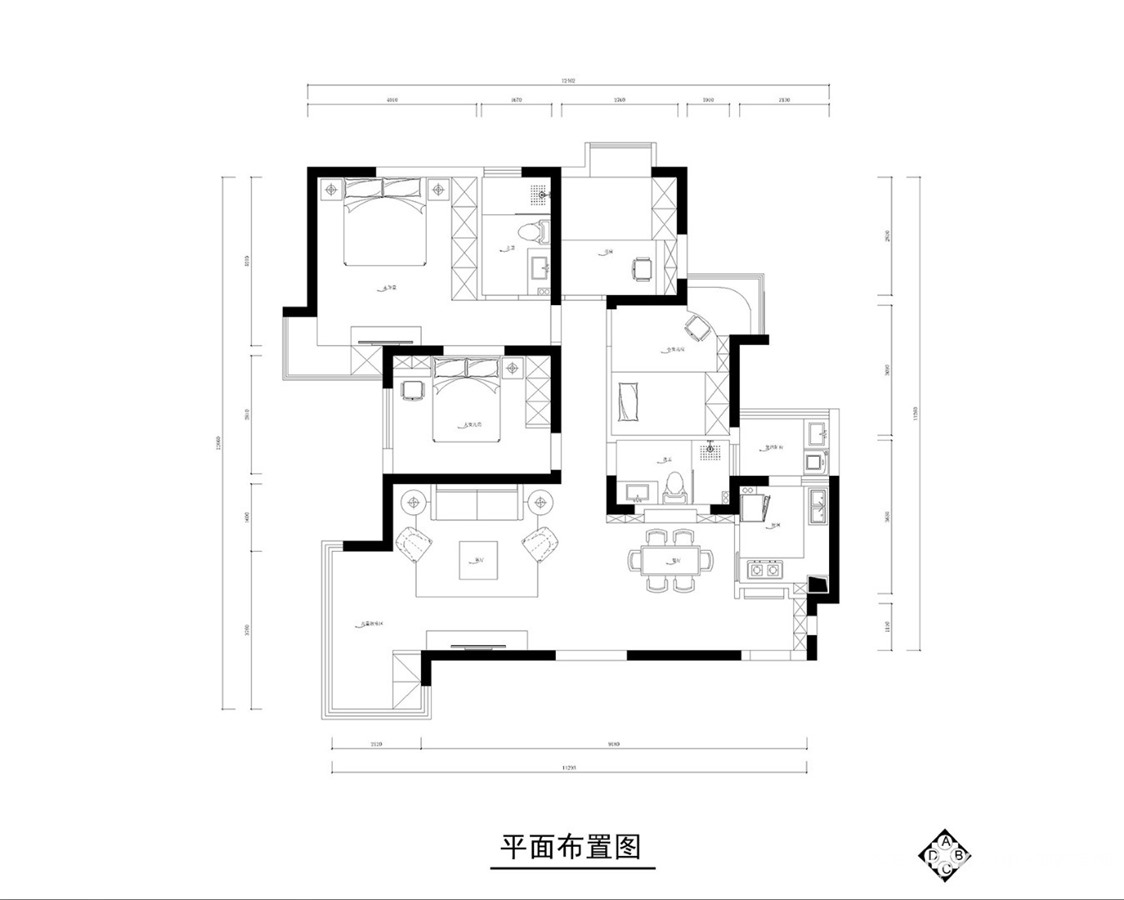 小区:卓锦城 面积:120㎡ 户型:三居 风格:混搭风格