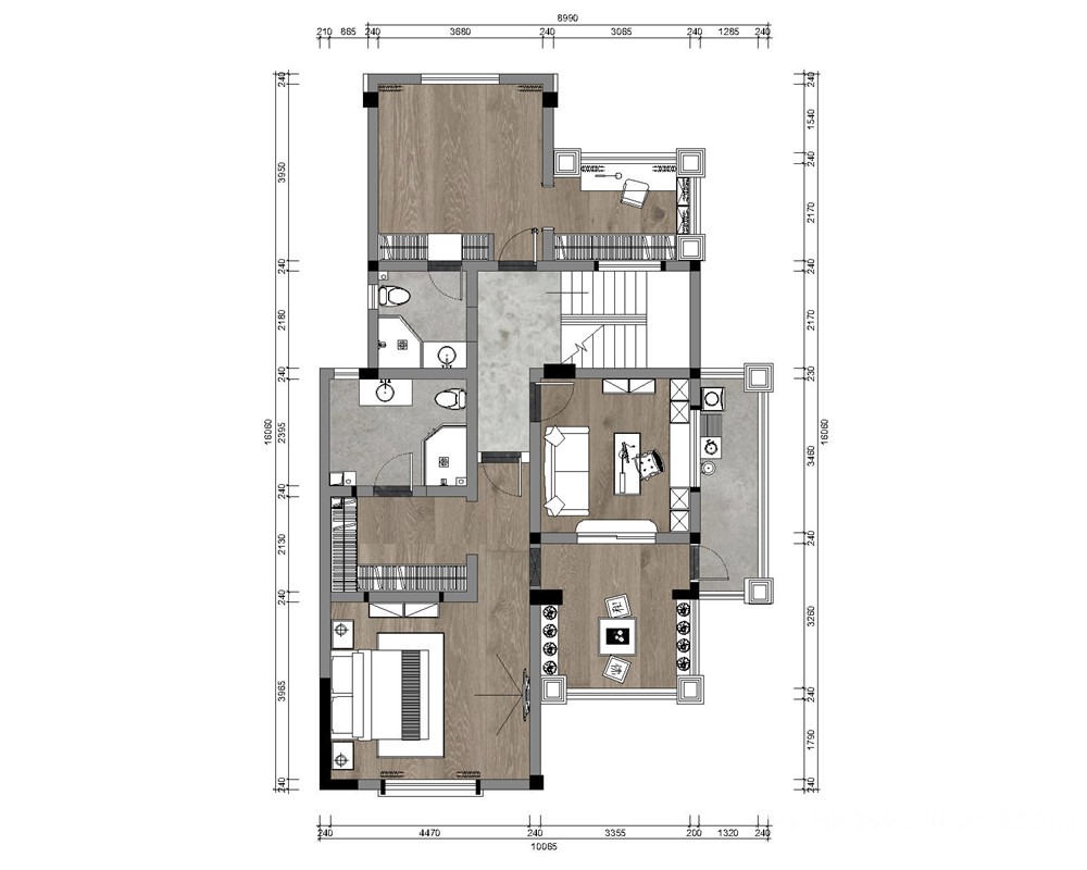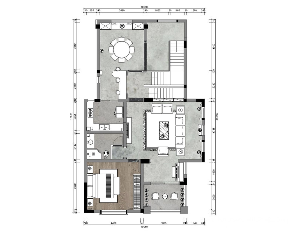 本案定位于法式风格,融入适当现代元素,为奢华的法式空间增添一份轻松宁静,在设计之中,摒弃了吹毛求疵的形式美,否定过分的堆砌和浮夸,通过清晰,简明的线条勾勒和素净质朴的家具融合,构建出舒适的家。
