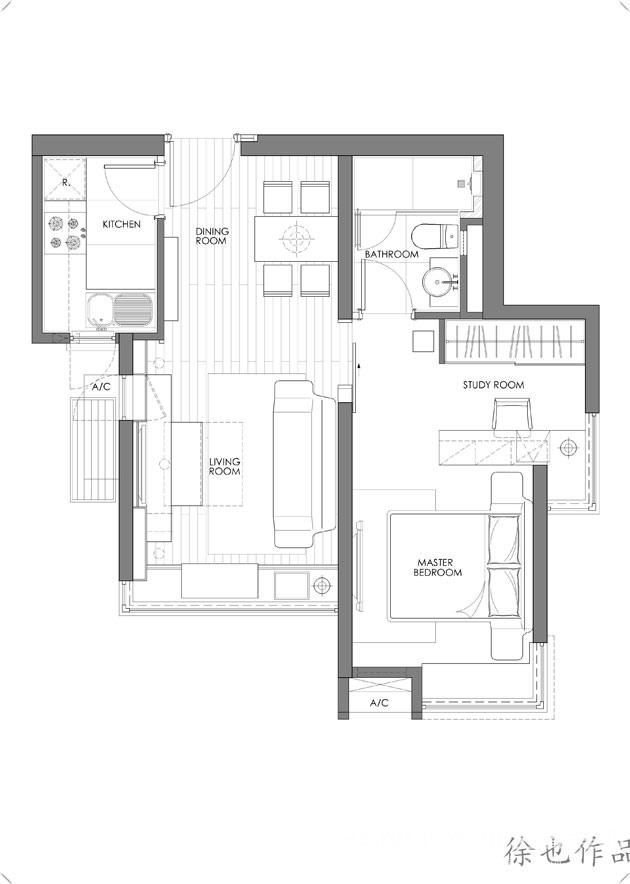 小区:汉口新界广场5號公馆 面积:60㎡ 户型:一居 风格:现代简约风格