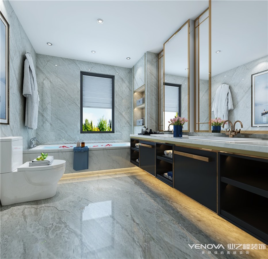 成都业之峰装饰设计案例:本案为叠拼别墅,常住为小两口,在设计上要考虑时尚,大方,光线,通风及储藏空间,我们在设计的过程中将结构做了大的调整,将客户所担心的所有问题都很好的解决,在颜色方面将冷色的石材及瓷砖和深色墙板相结合,客户对效果满意度很高。