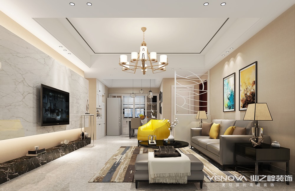 咨询电话:0791-86296016,本案的女主人对白情有独钟,喜欢清爽干净的居住空间,不需要喧嚣的奢华,只需要简单安静的生活.设计的色调以米白色,再配上少亮的黄色,,加以撞击,使整个空间产生明高的对比,给人以眼前一亮的效果,电视墙的大理石造形与简约的地台充满了时尚感,且性价比及高.简约的设计让心灵在喧嚣的都市里得到一种纯净和安宁,摒弃了繁琐,显示出井然有序的理性空间.