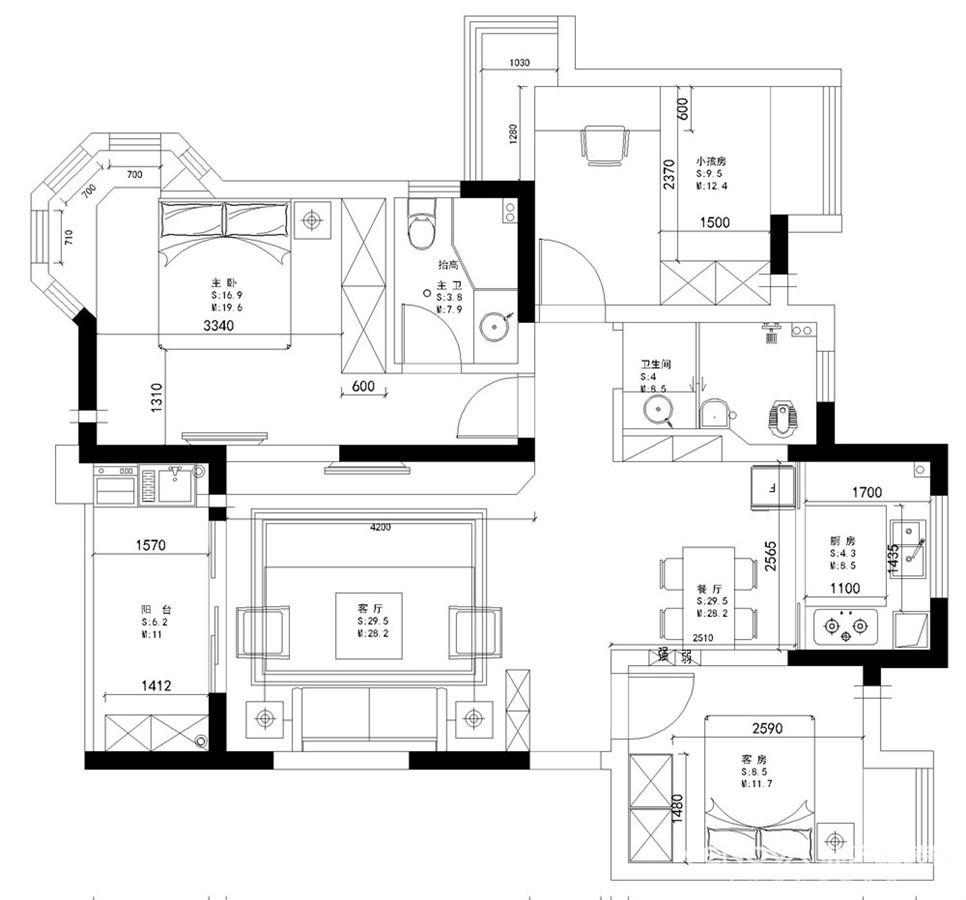 小区:世纪朝阳中央城 面积:105㎡ 户型:三居 风格:现代简约风格