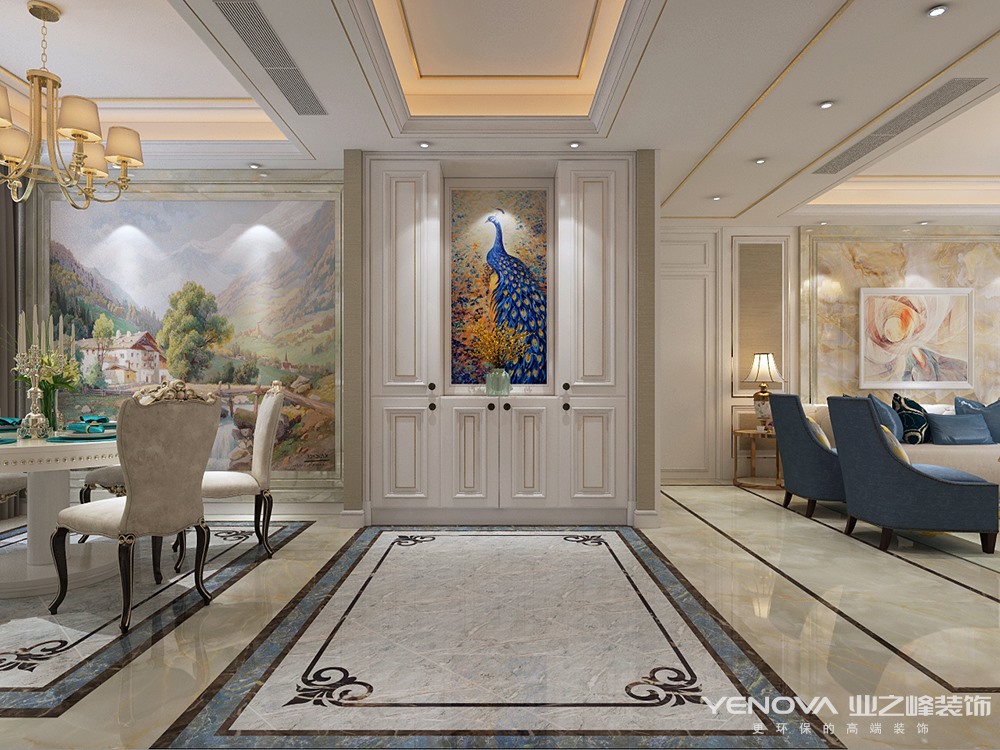 本案设计白色欧式现代风,客户对颜色要求必须温馨舒适,整体设计以简洁为主,将原有欧式风格中繁复的雕花、柱饰进行简化,在保证风格基调的同时尽量以现代手法让环境焕然一新。