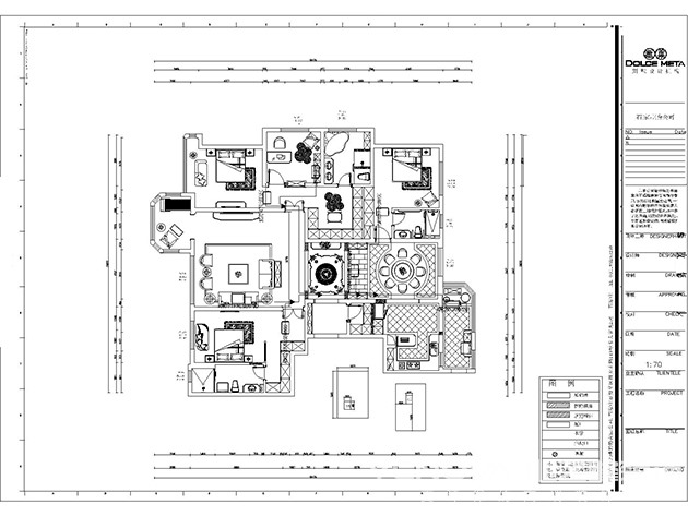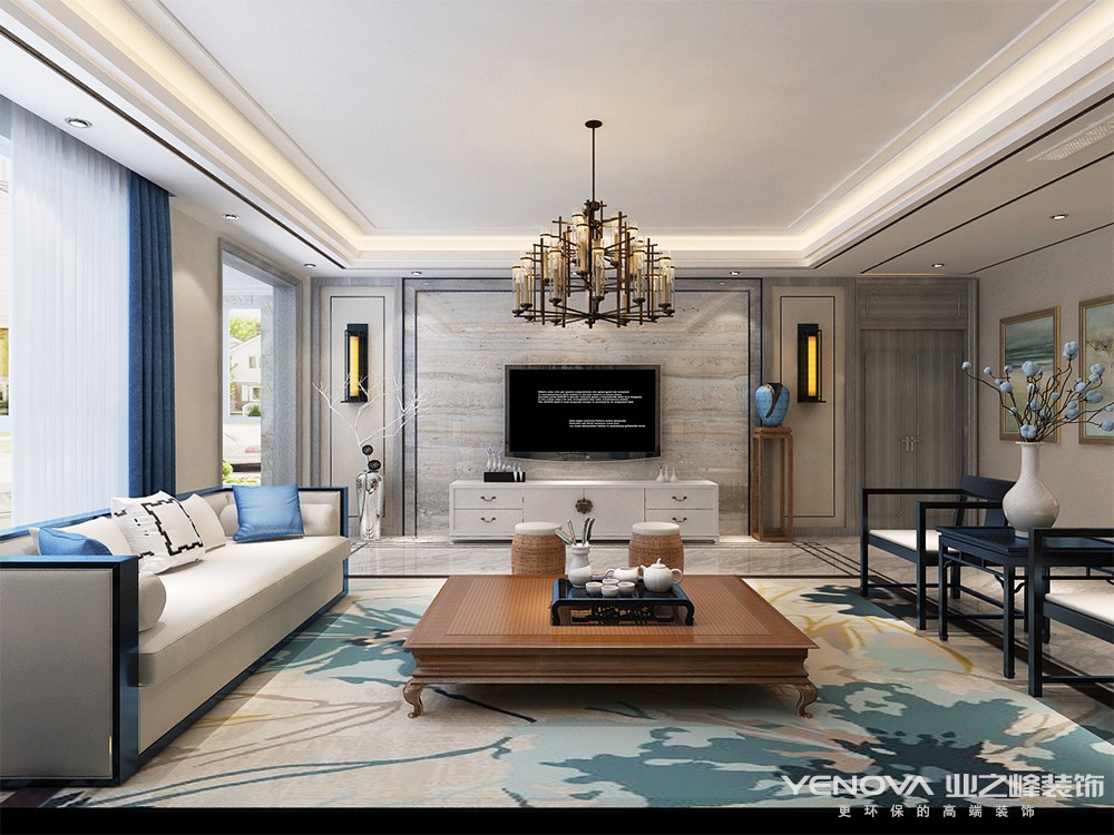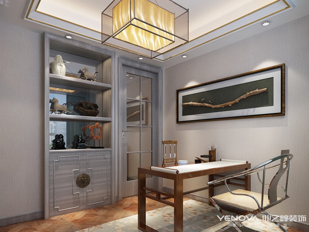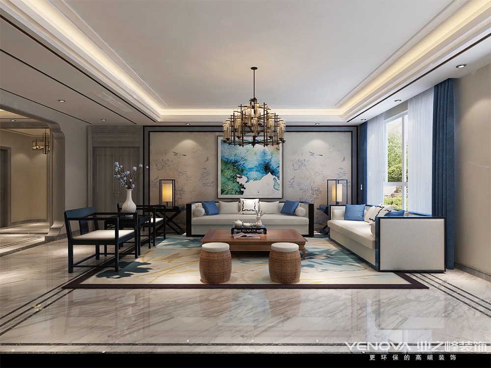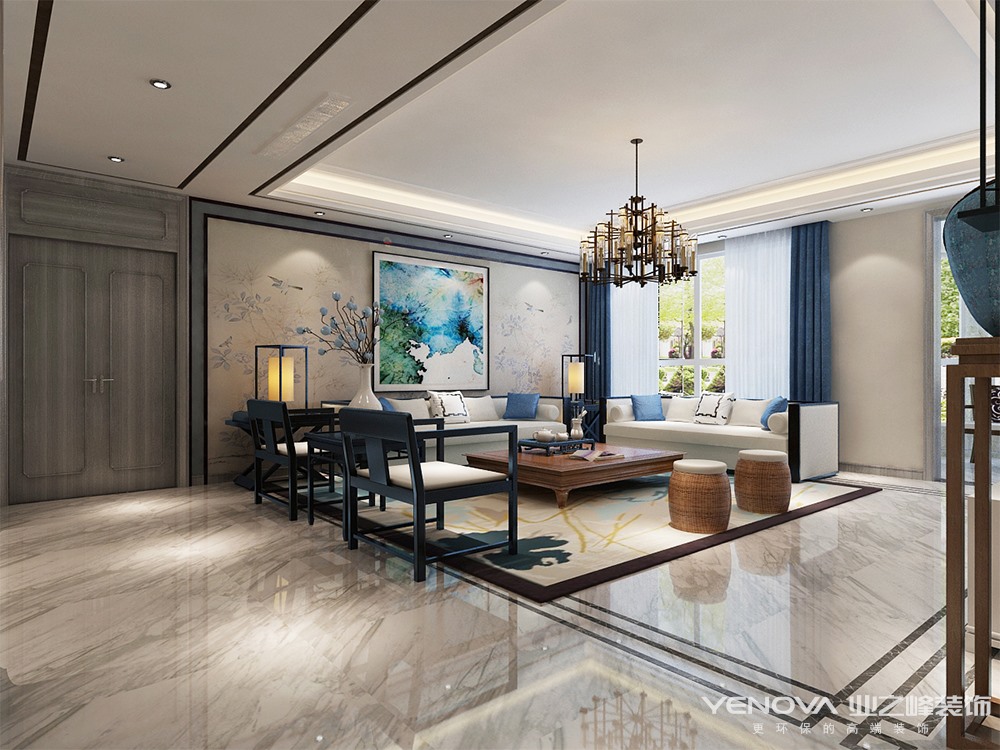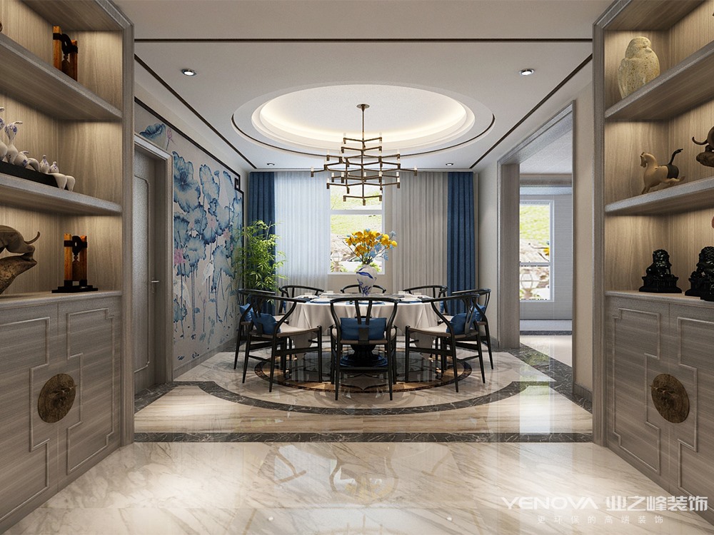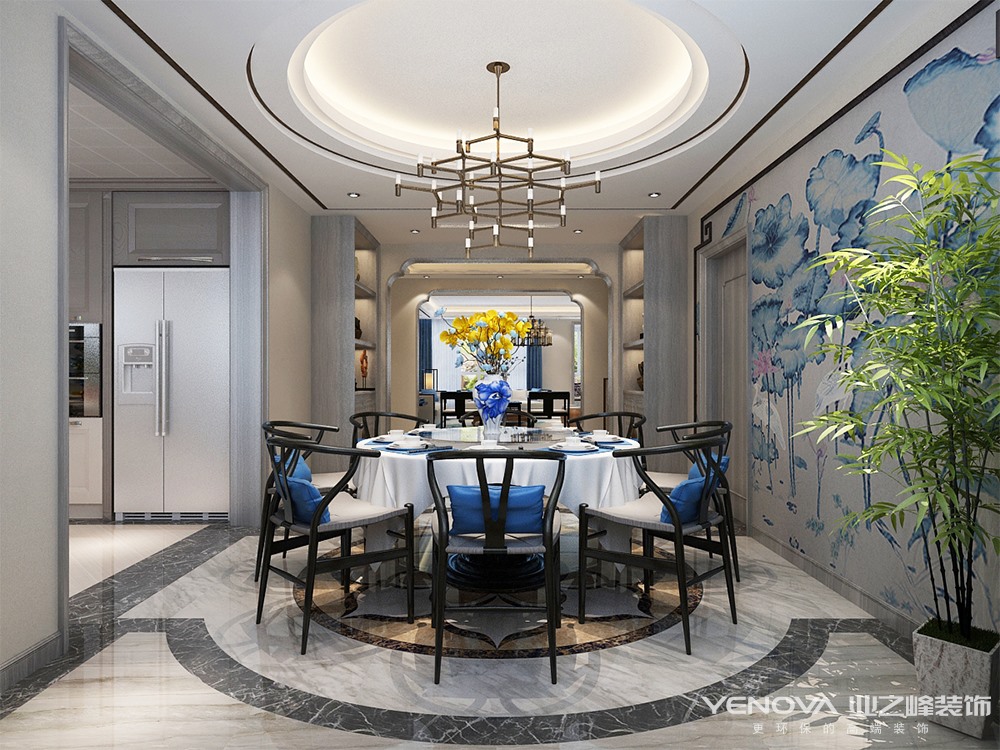 本案取名《水墨府邸》为新中式风格,整体色调除家具外所有木作都以灰色为主基调,垭口造型以简洁的中式的线条为主,餐厅地面以莲花做地拼,整体设计尽量将空间尺寸释放出来