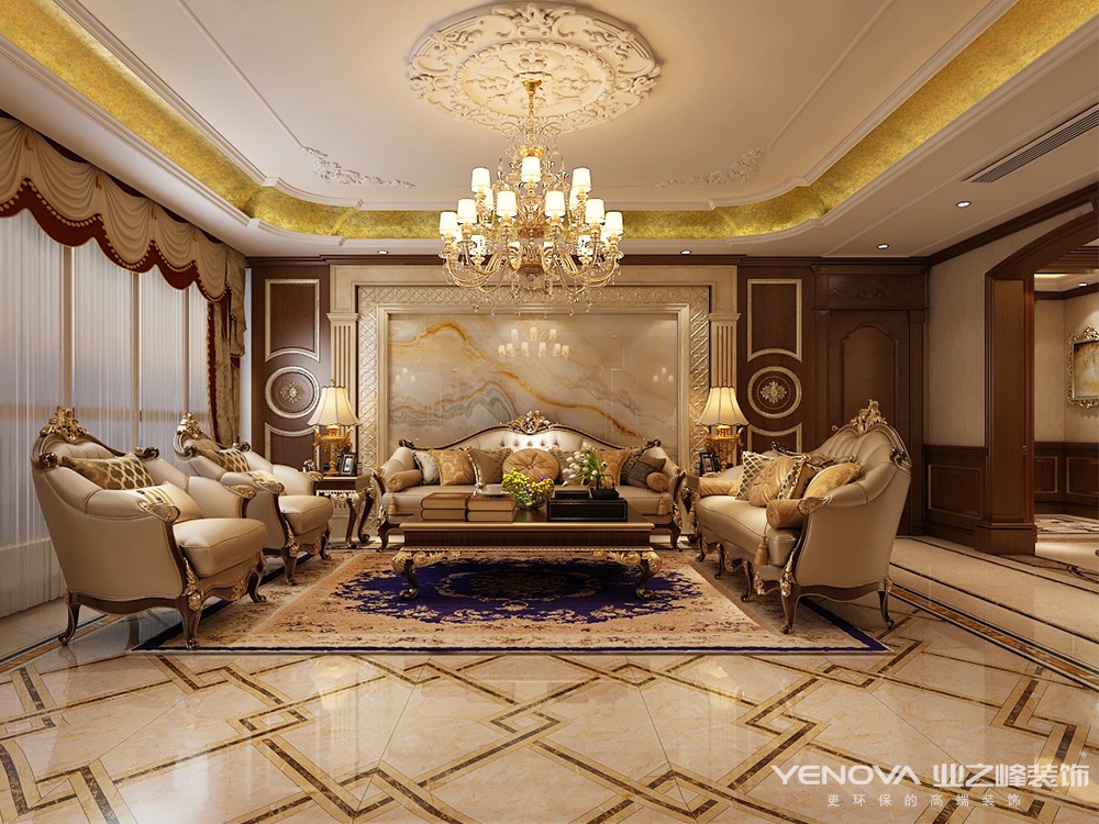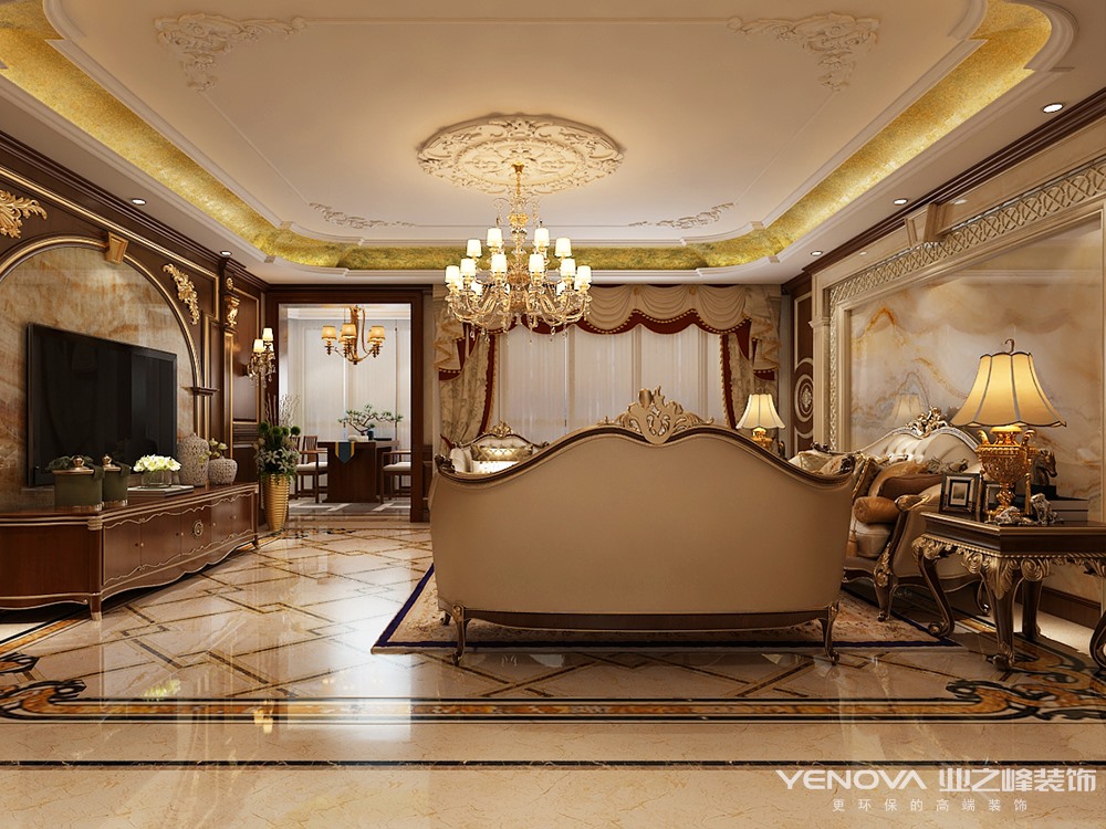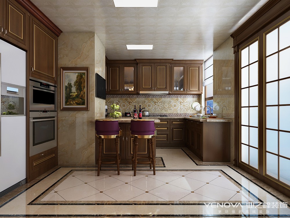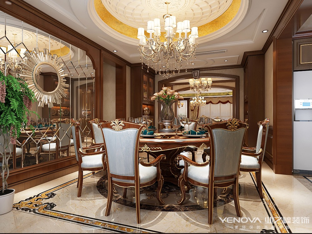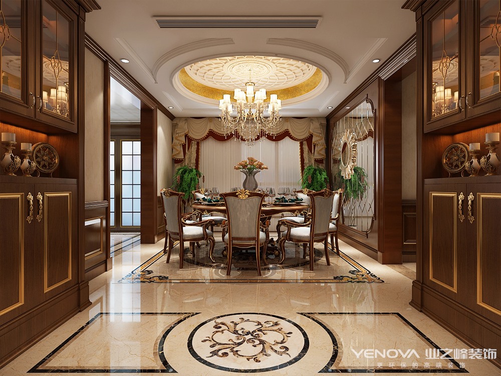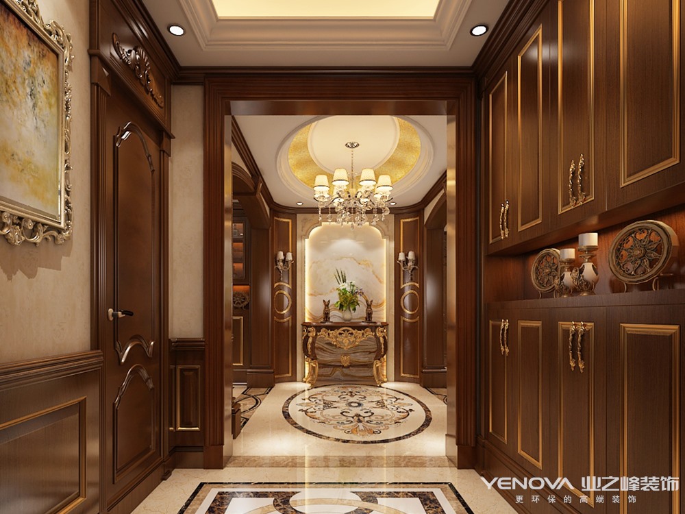 古典欧式是很多成功人士的选择,墙板以红橡为主配以天然大理石,充分体现欧式的庄重、大气之感,地面拼花配色丰富,吊顶造型在不影响层高的情况下,把欧式风格体现的淋漓尽致
