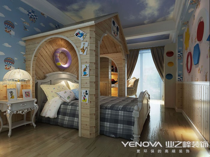 为了满足了孩子自我学习的单独空间 色彩的选择上儿童房色彩相对大单明亮 公共区域则选择了更整体更雅致的蓝色色系列